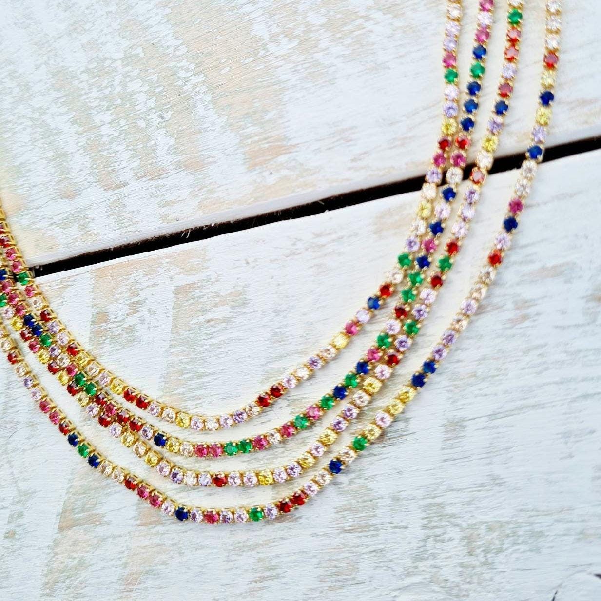 Multicolored sparkly cz's necklace in 18k gold plated