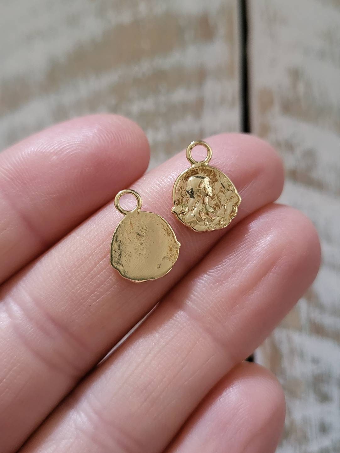 Small rustic style round 18k gold plated pendant/charm
