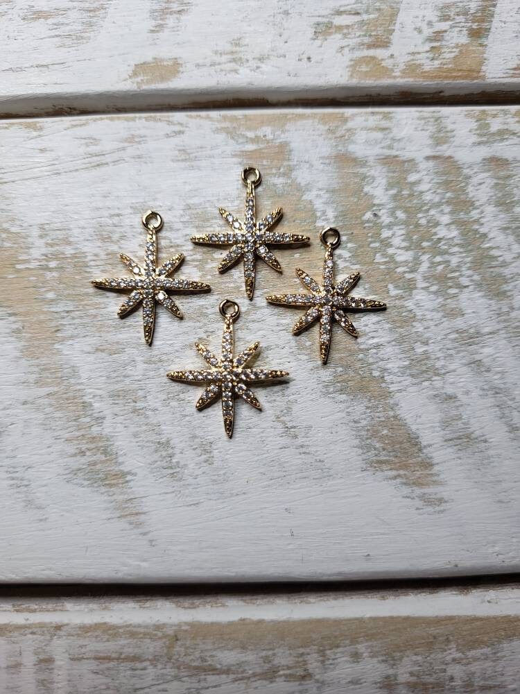 Sunburst pendant charm with clear CZ's. Gold plated