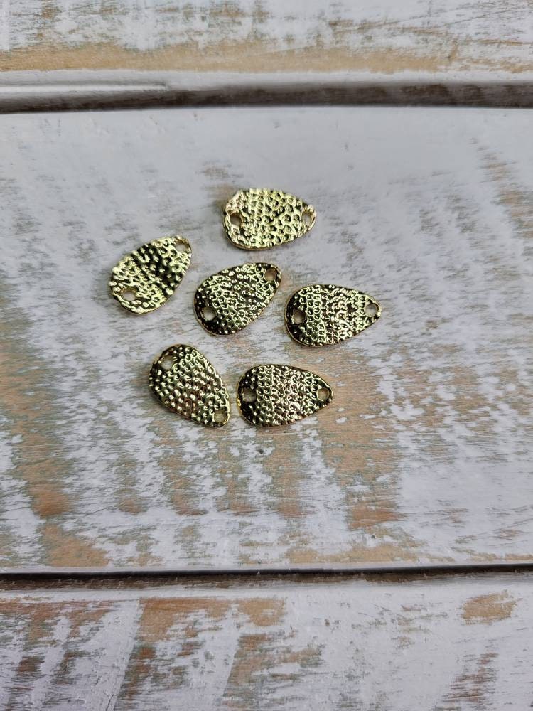 Light gold textured connector. Wavy 3d shape with 2 holes