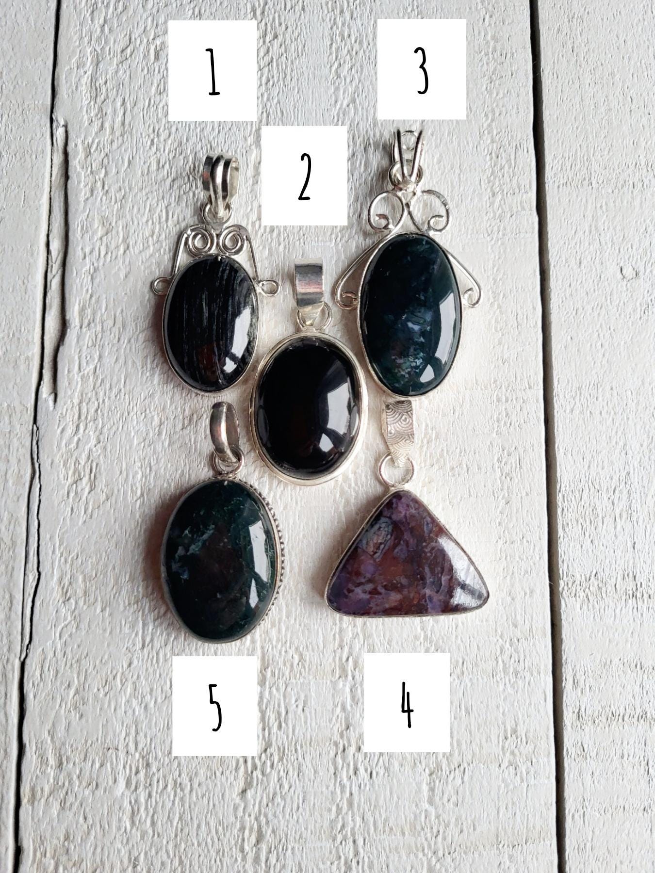 Gemstone Pendants in 925 plated silver, choose from...