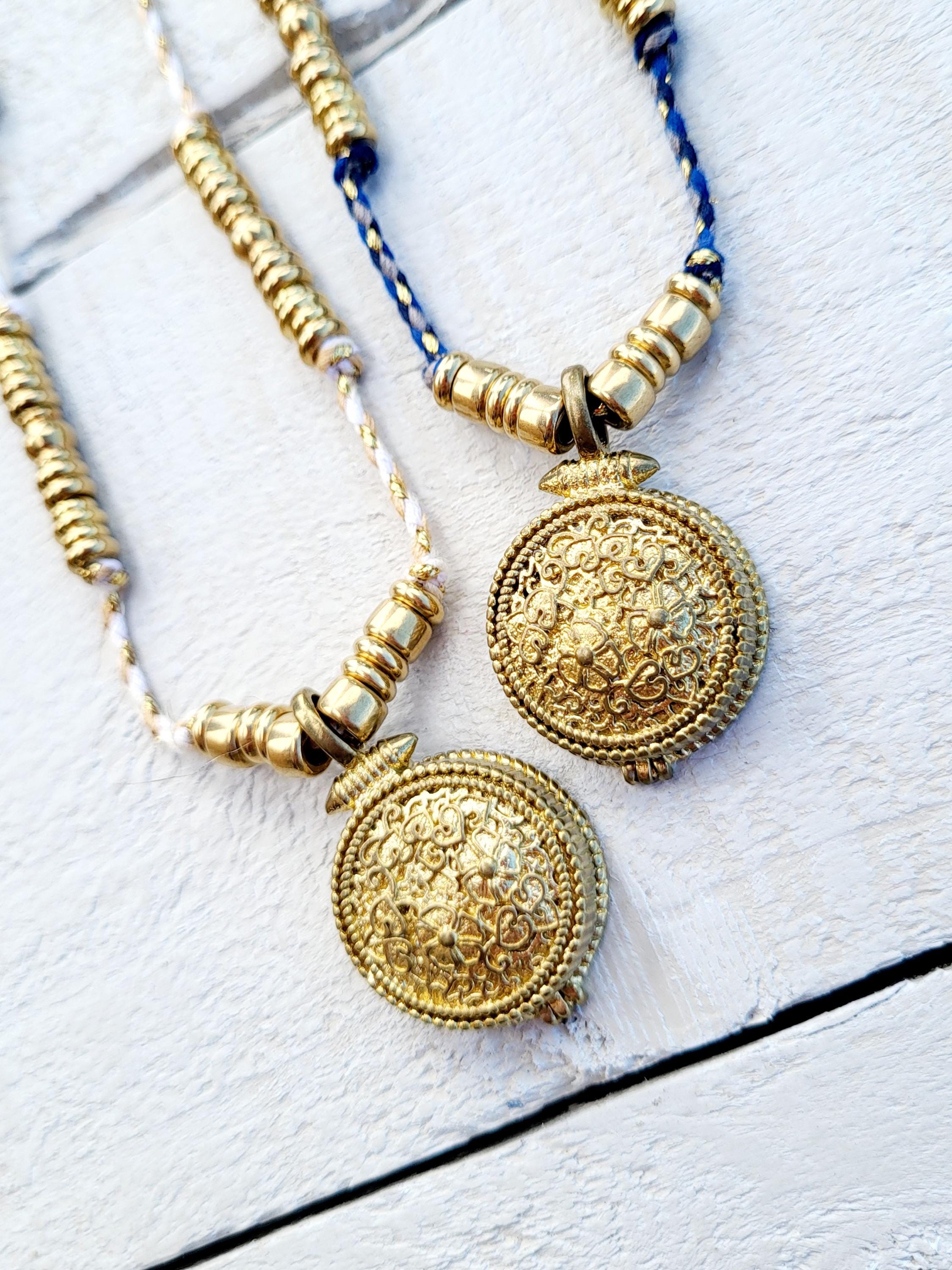 Brass beads and a brass opening locket. sometimes these are difficult to open but loosen after a while.