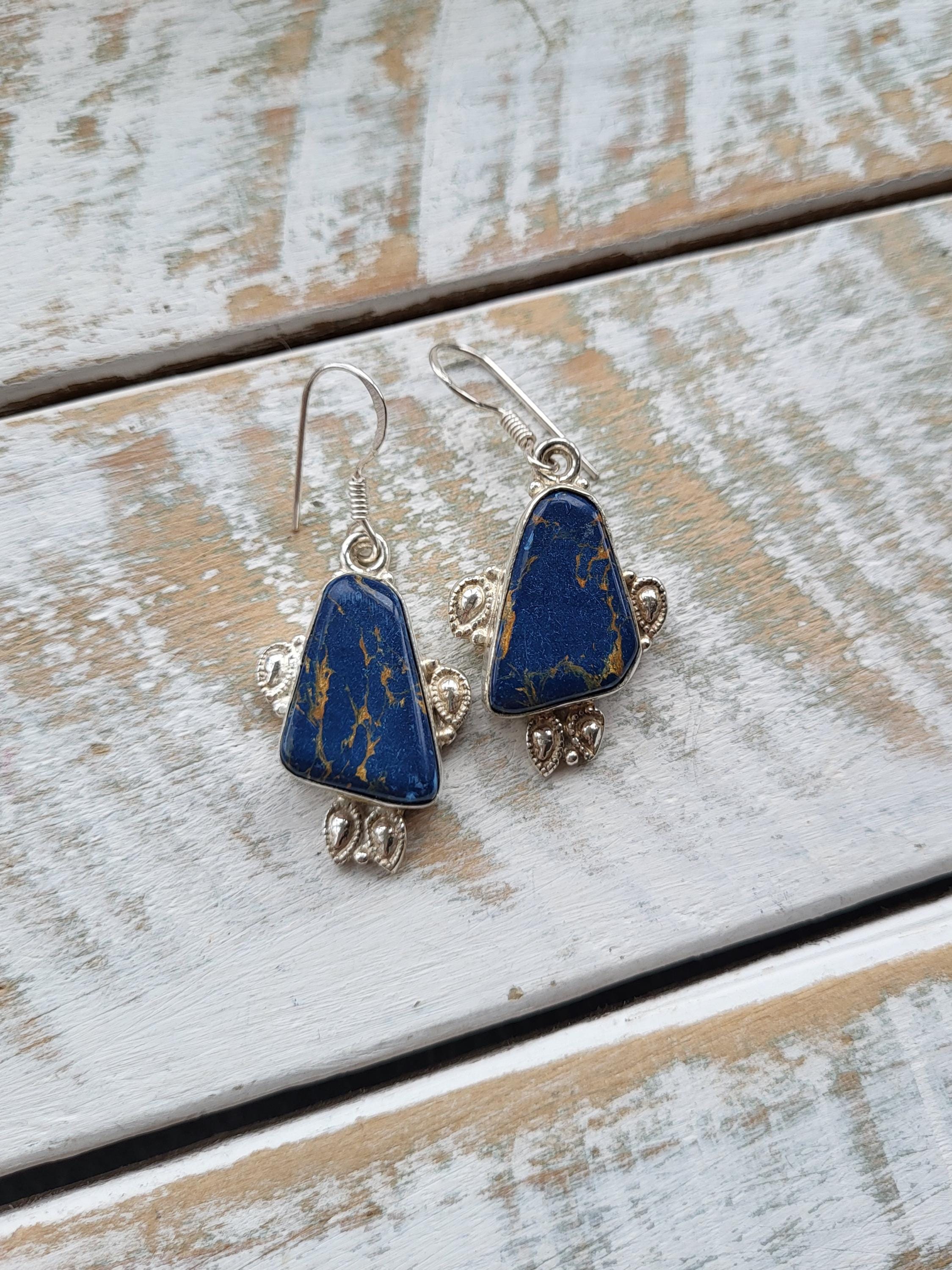 Dark blue magnesite, irregular shaped gemstone earrings. For pierced ears only. 925 silver plated.