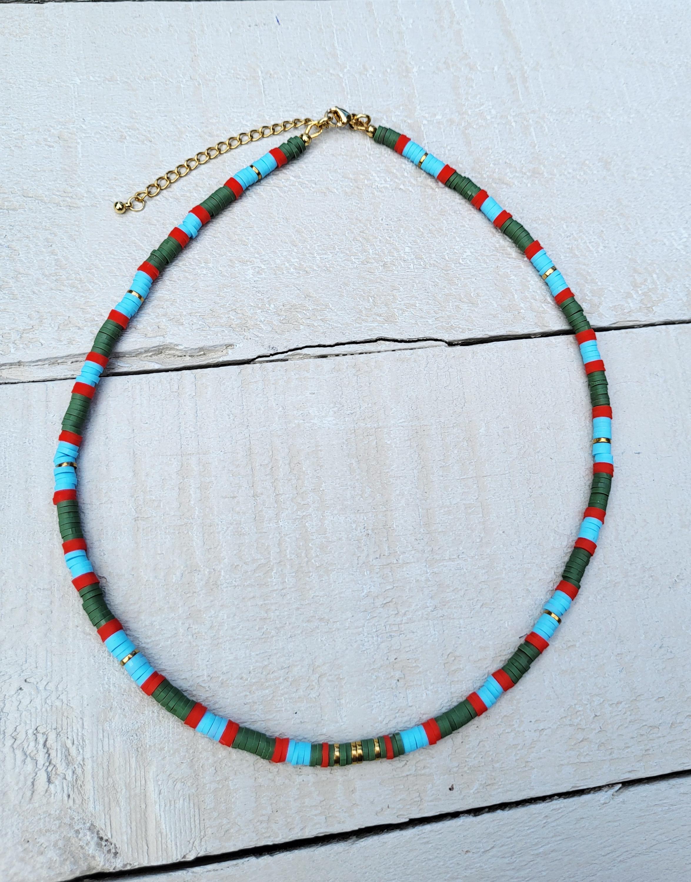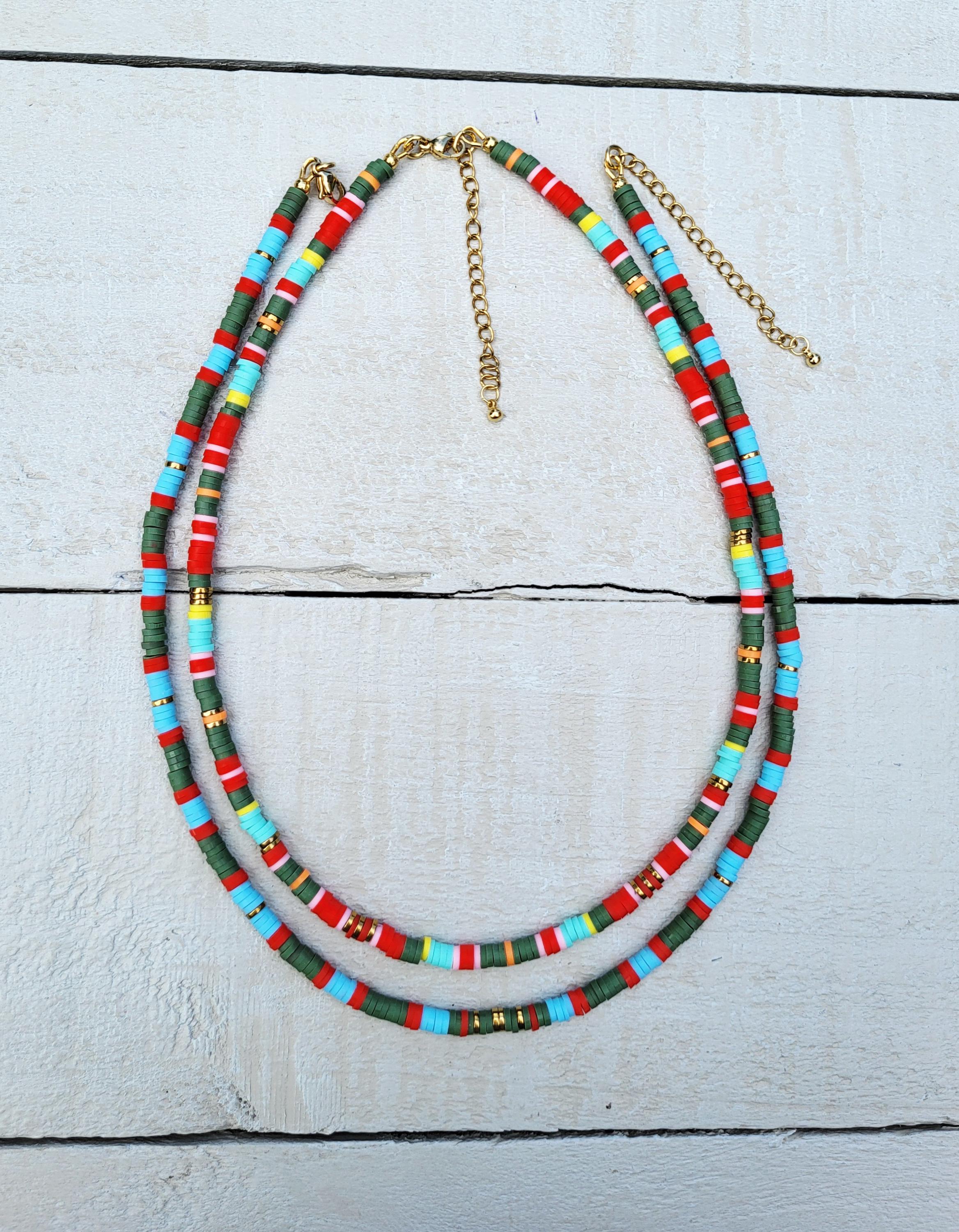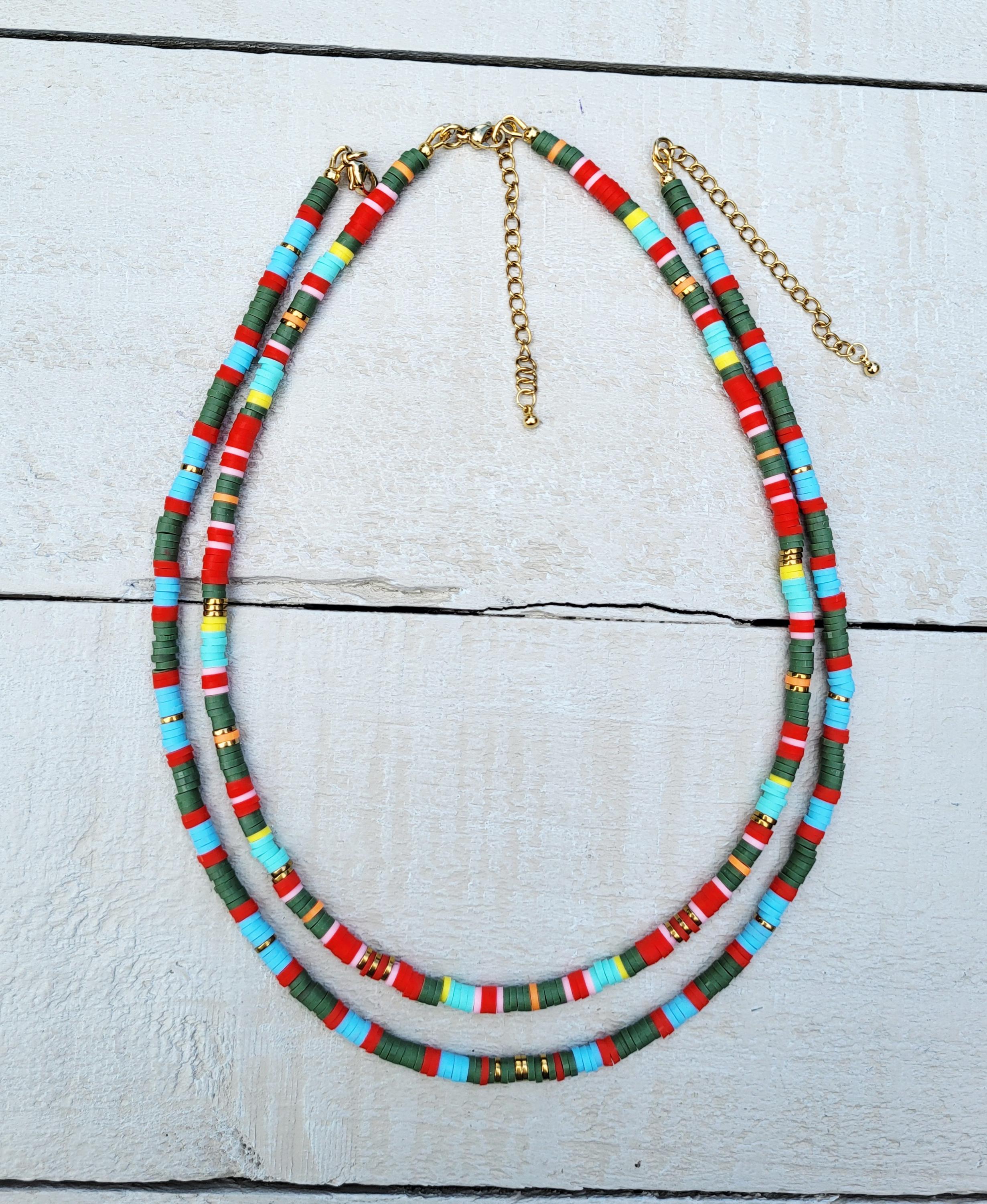 Stripes Heishi Necklace Blues Green Red 18k Gold Plated Boho Jewellery - BOHOSEASON