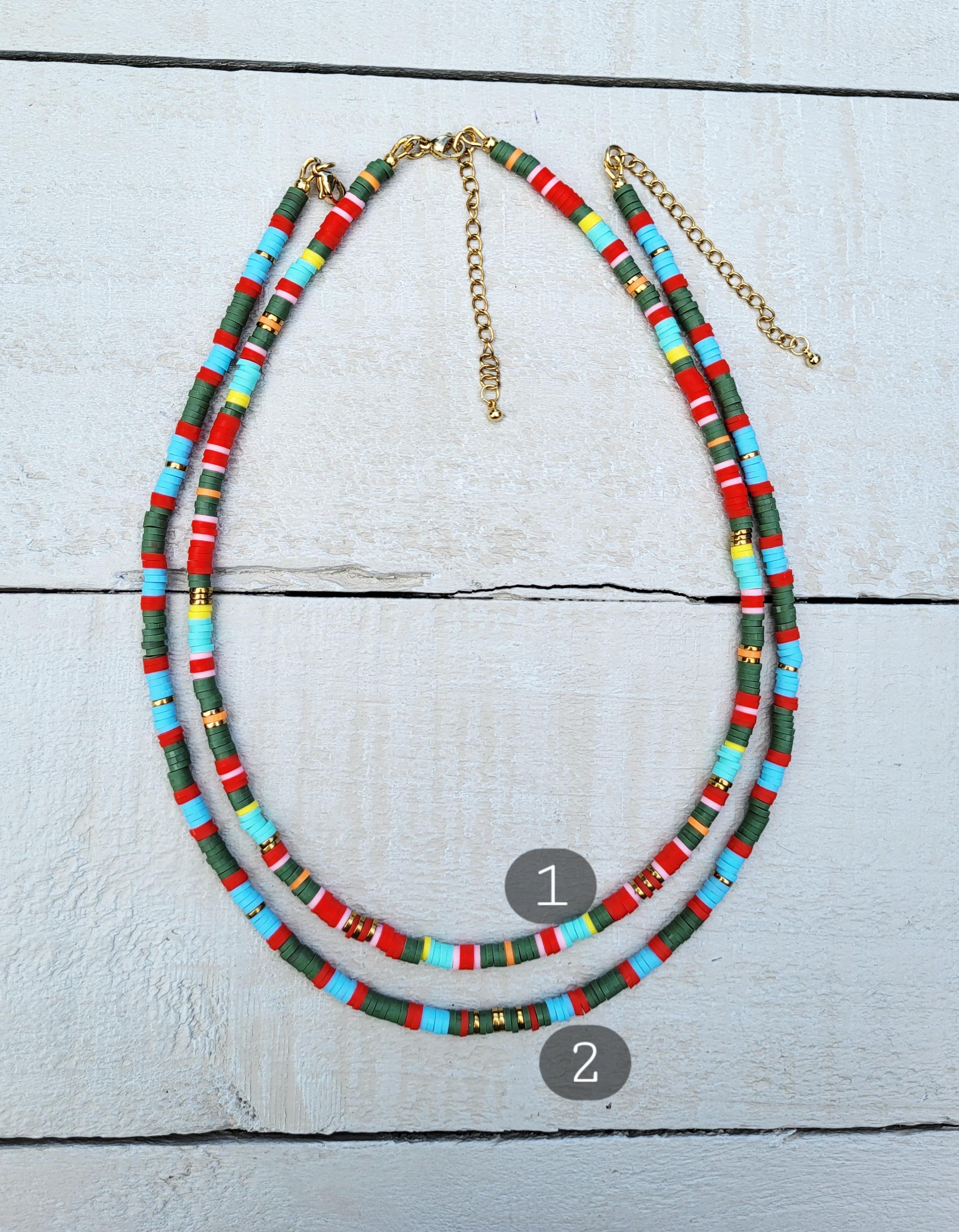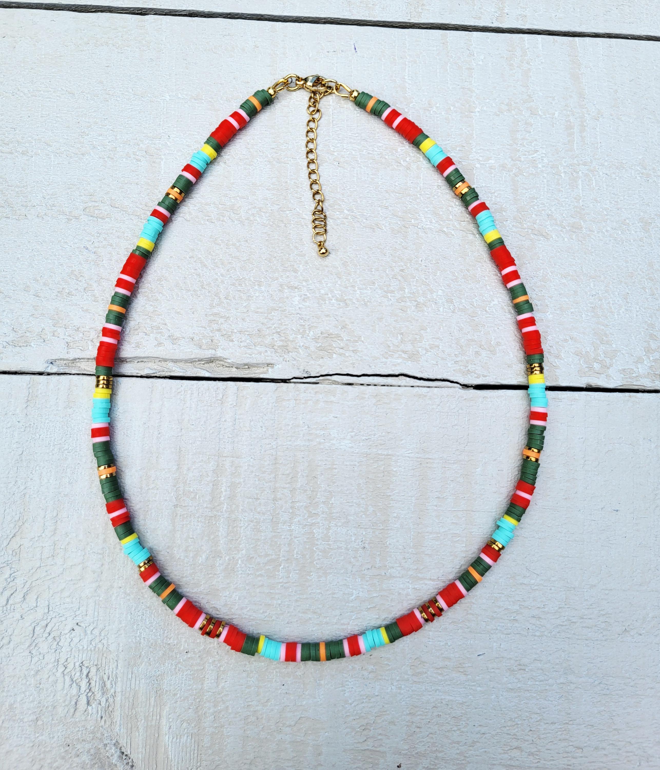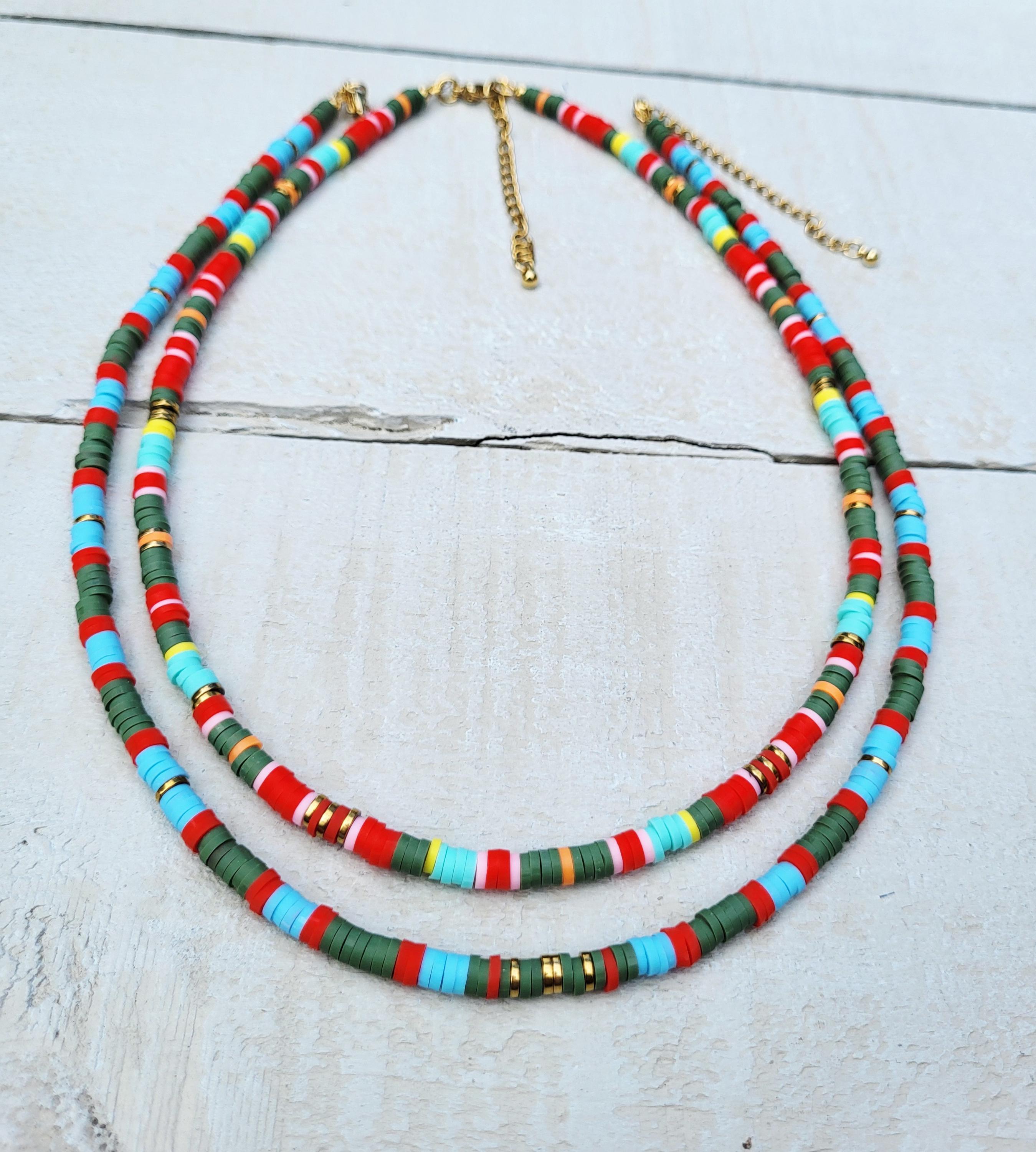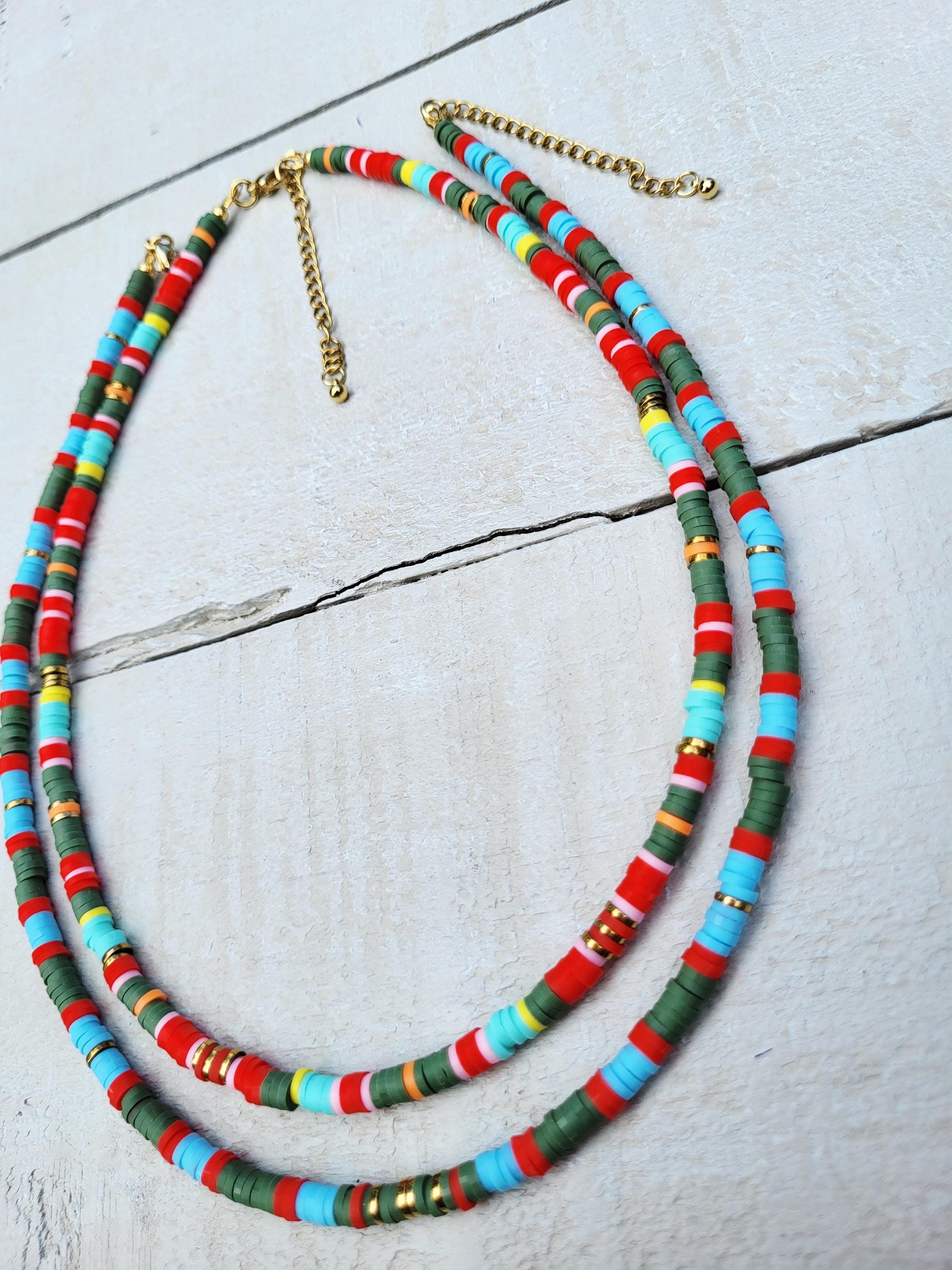 Stripes Heishi Necklace Blues Green Red 18k Gold Plated Boho Jewellery - BOHOSEASON