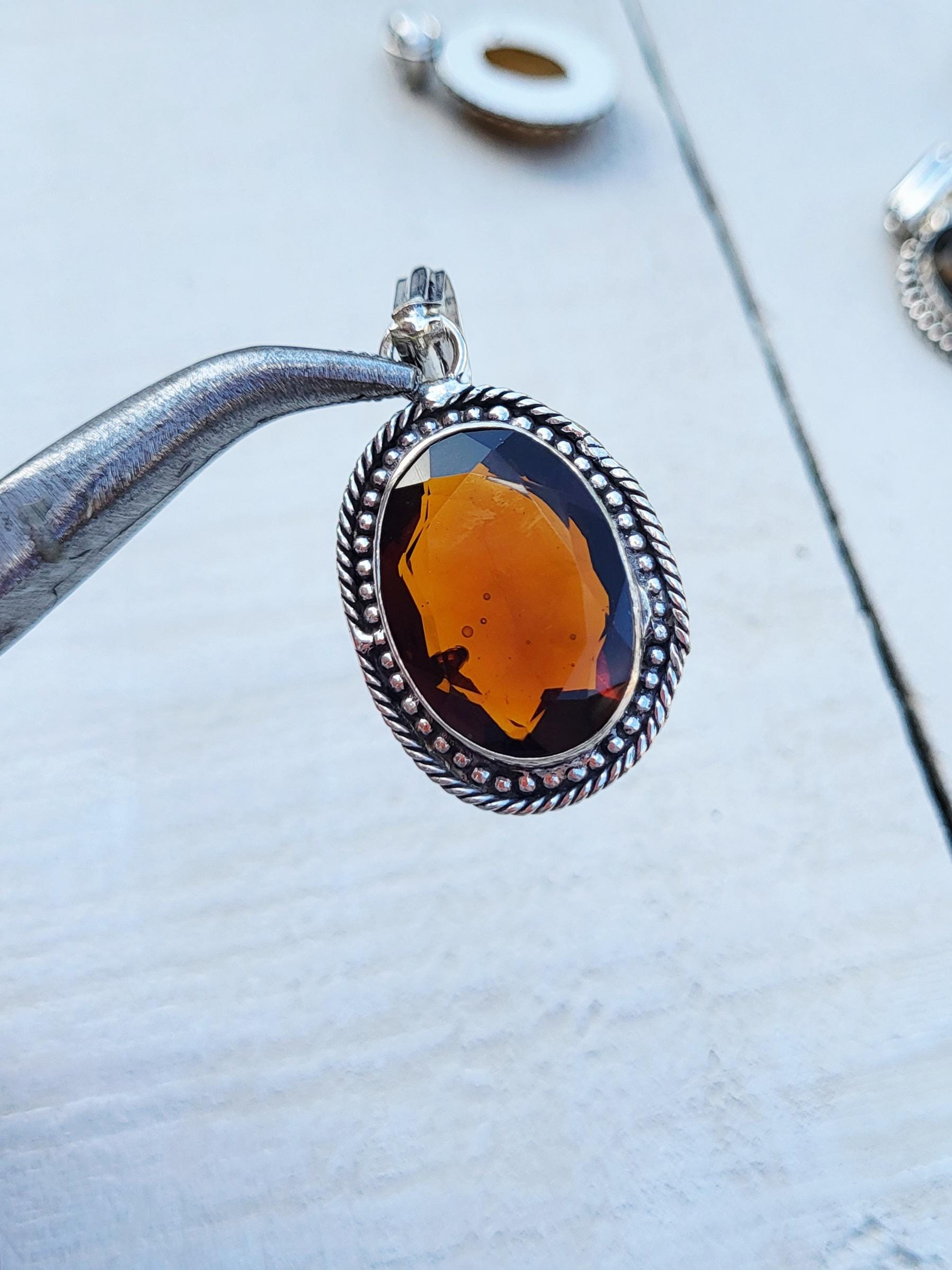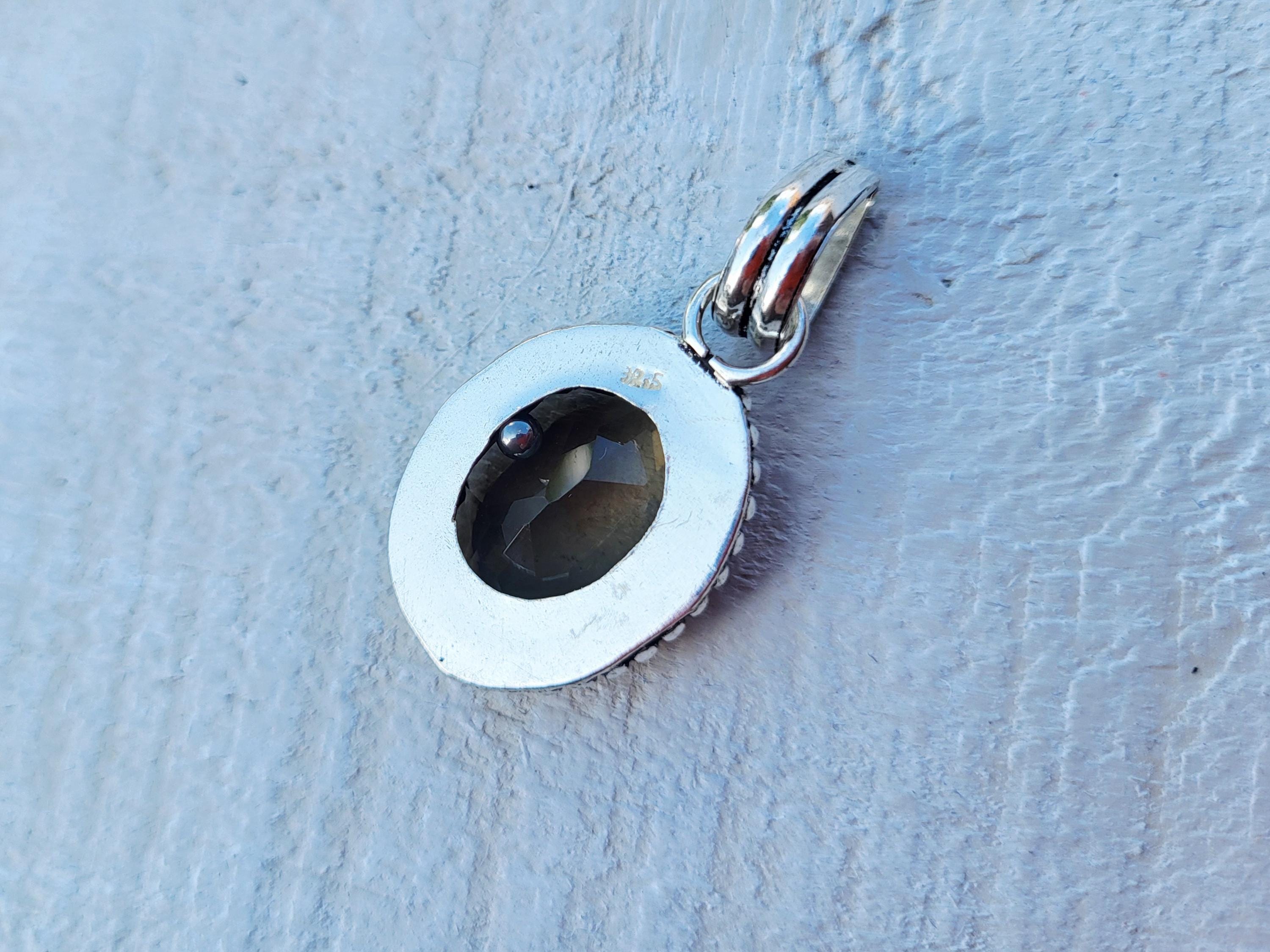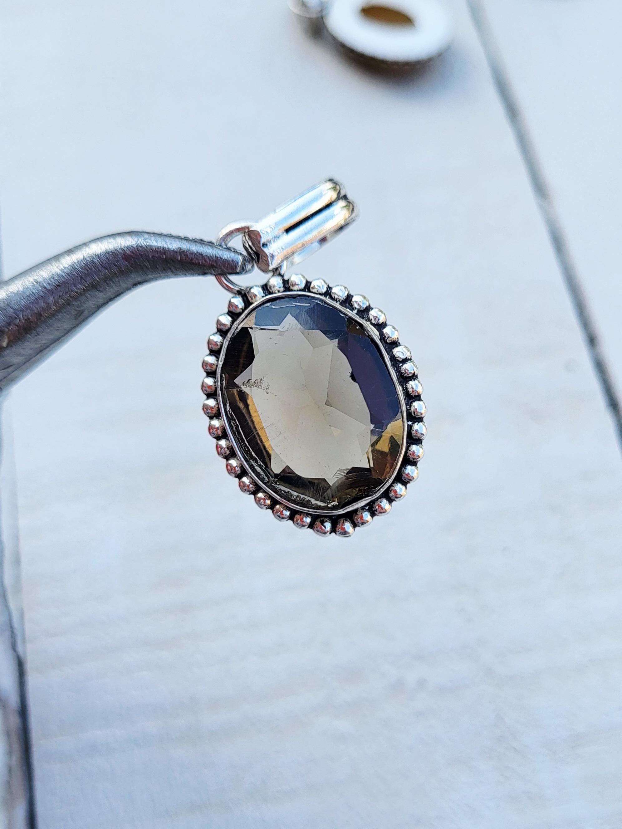 SMOKEY QUARTZ faceted stone in a detailed setting