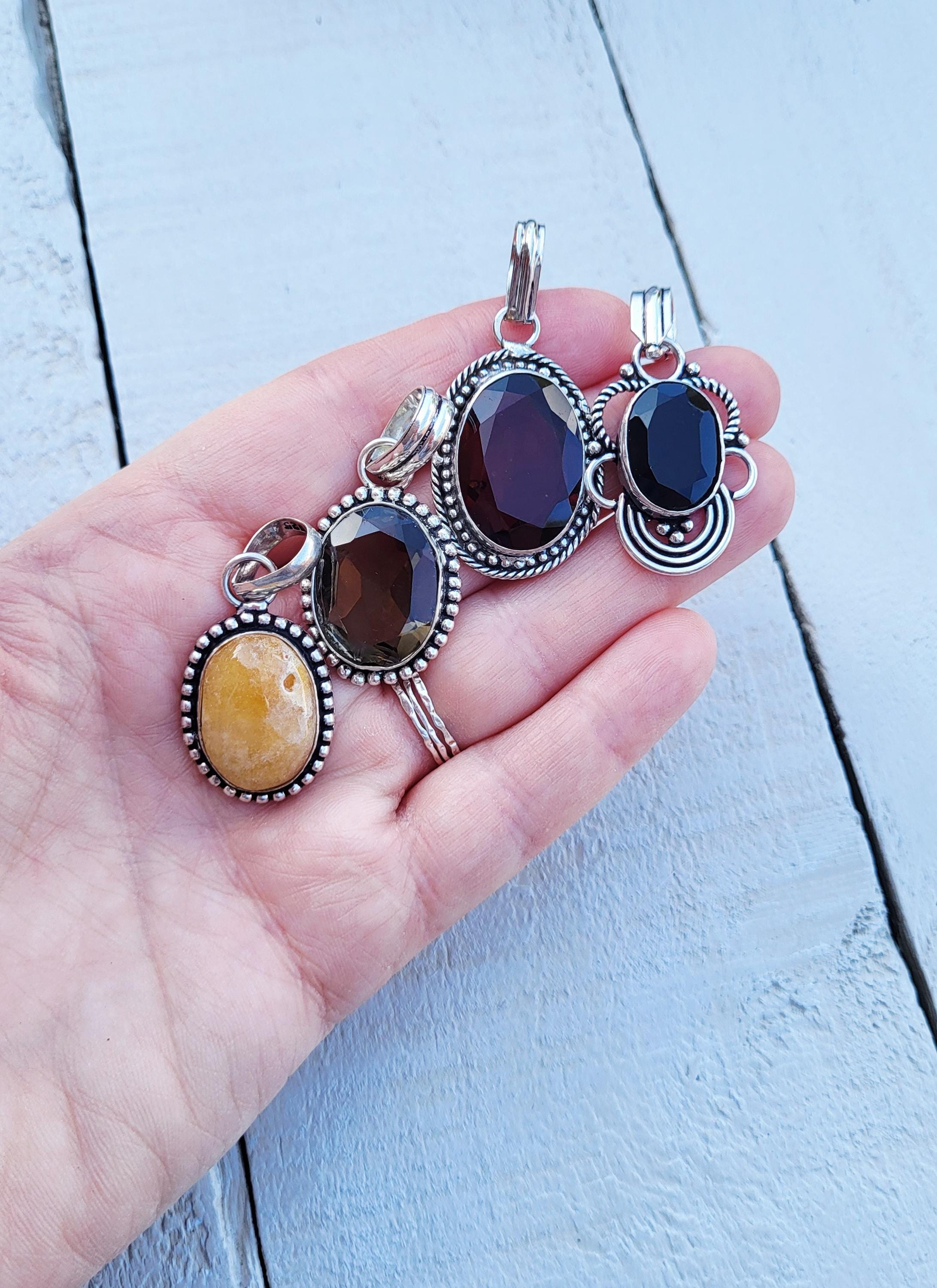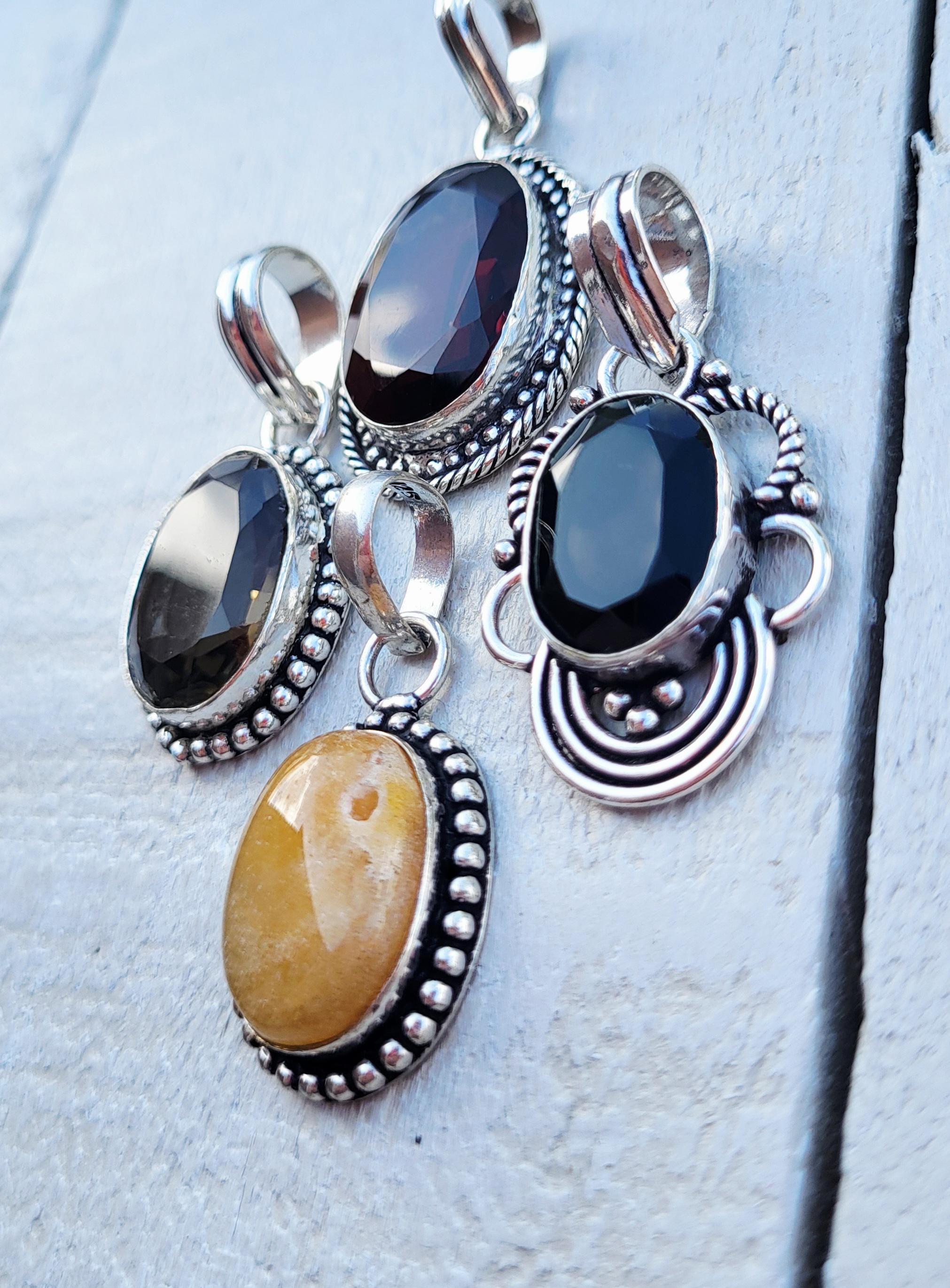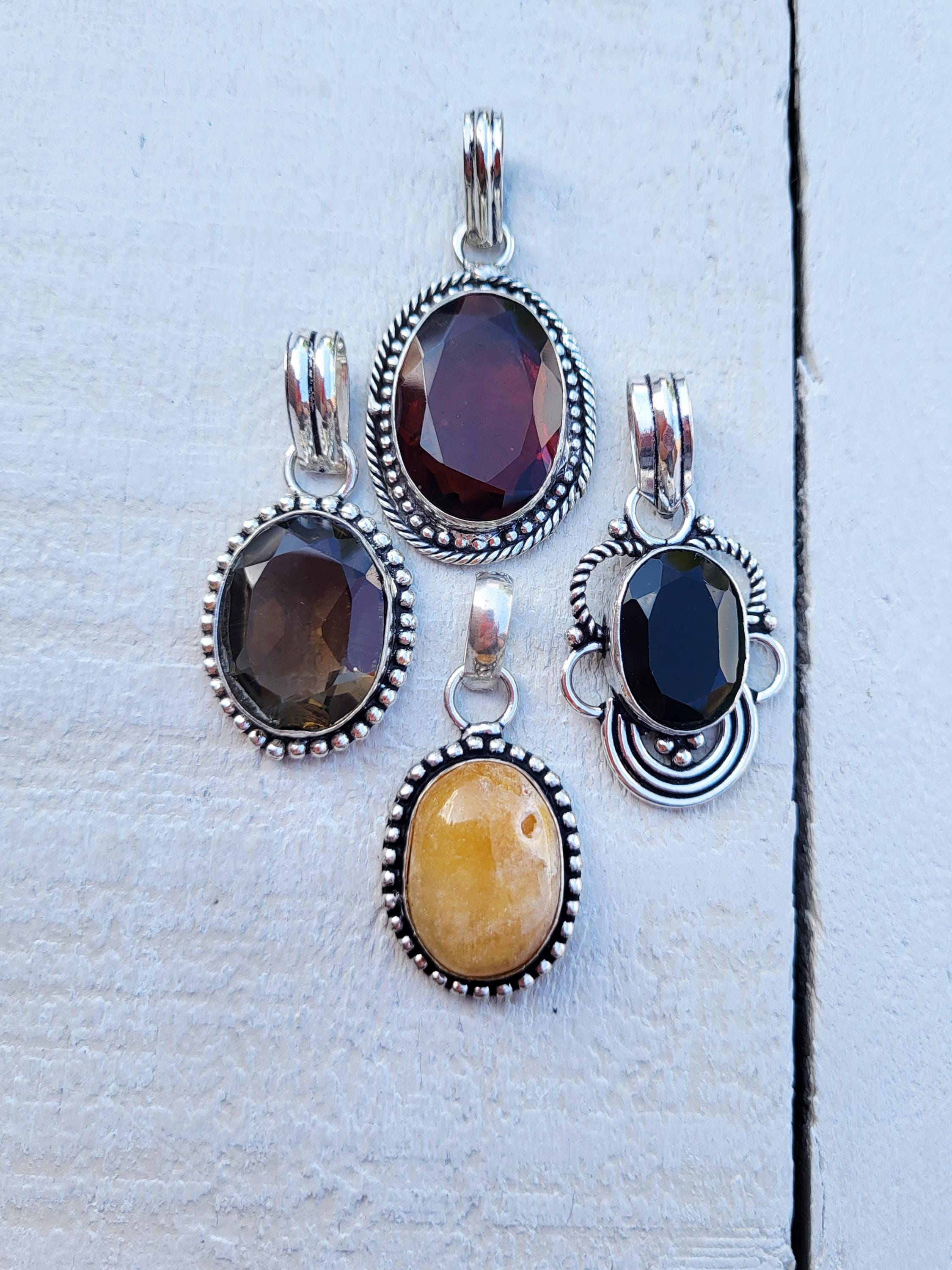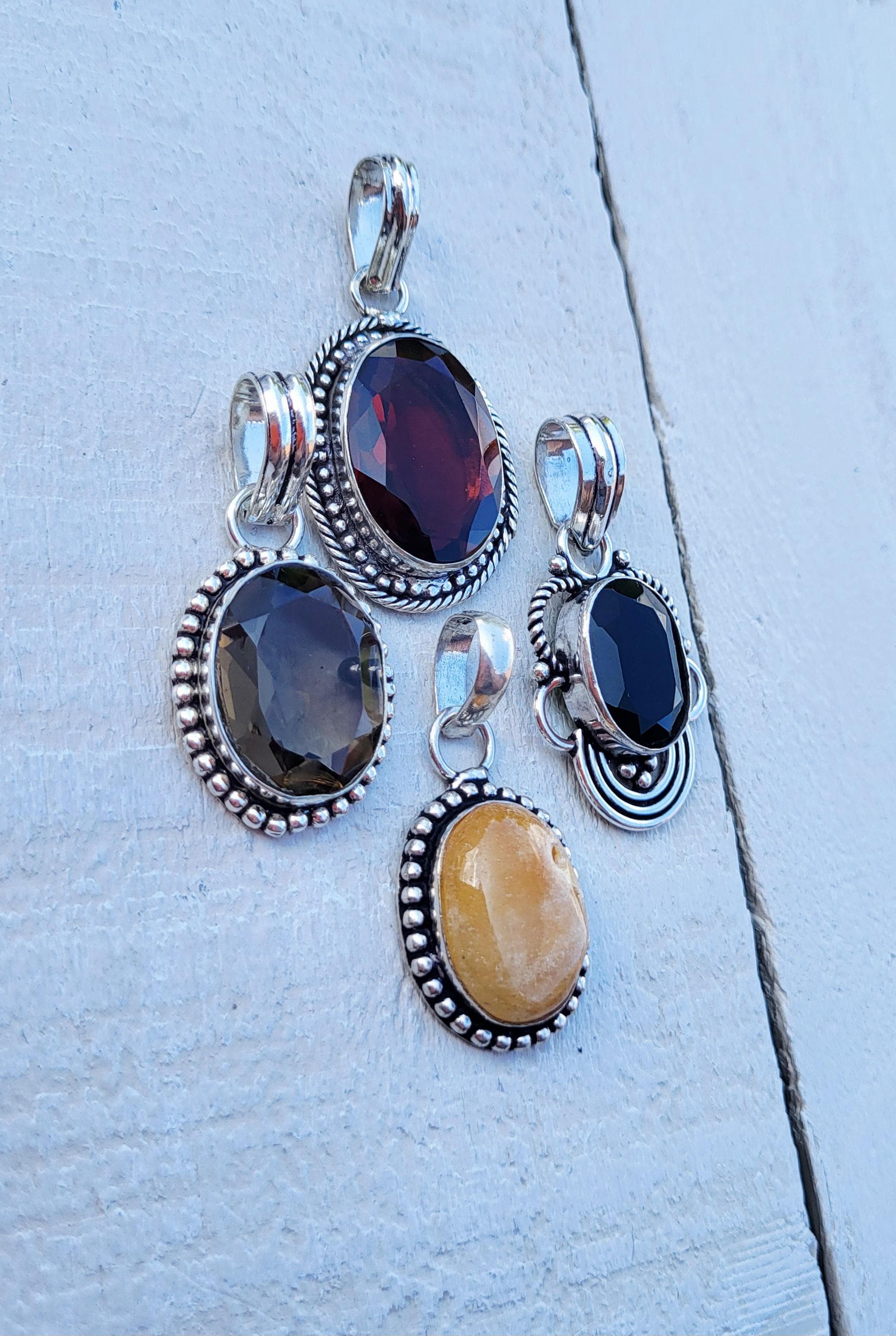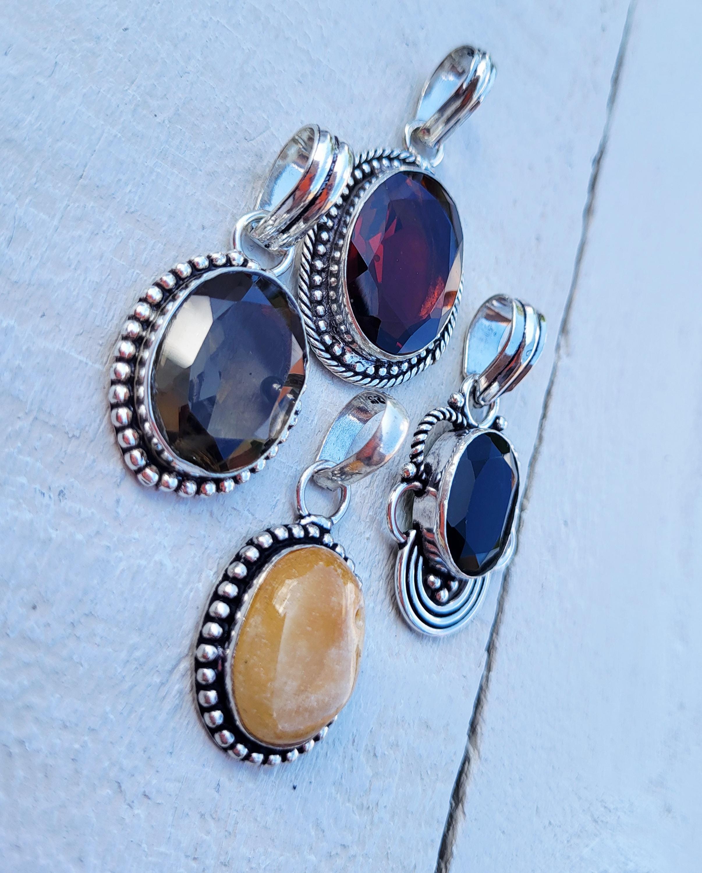 4 gorgeous oval shaped gemstone pendants in pretty 925 silver plated settings.