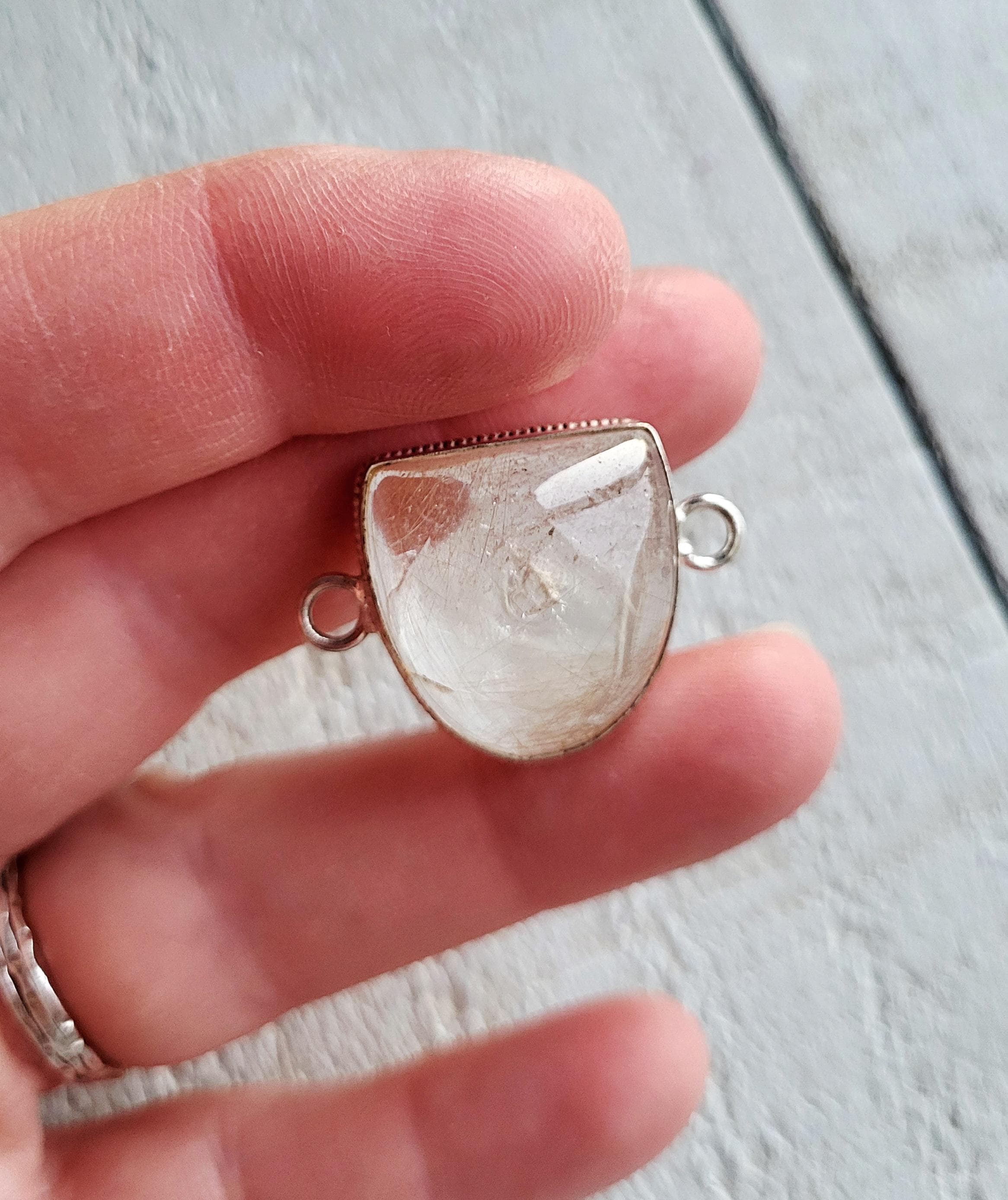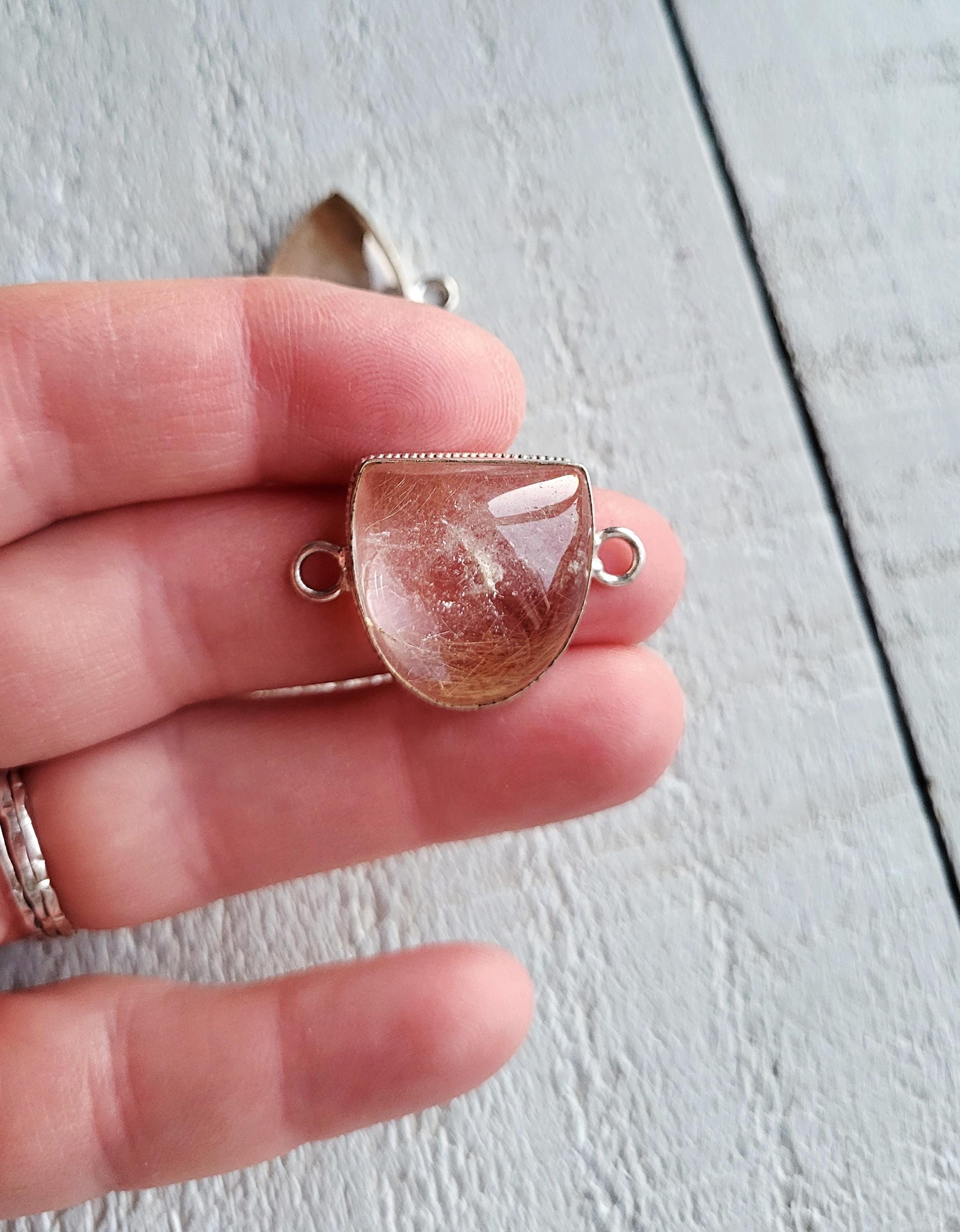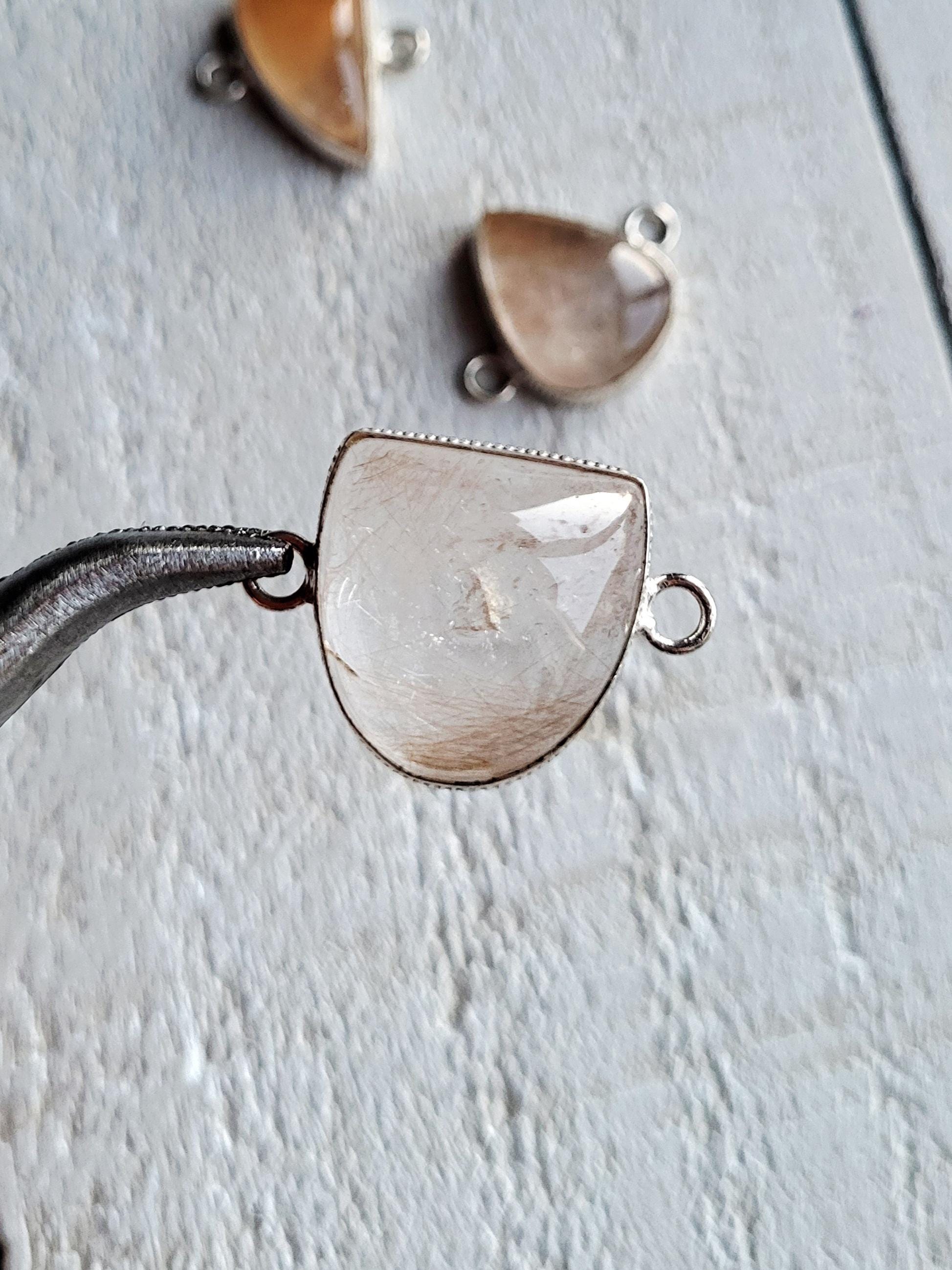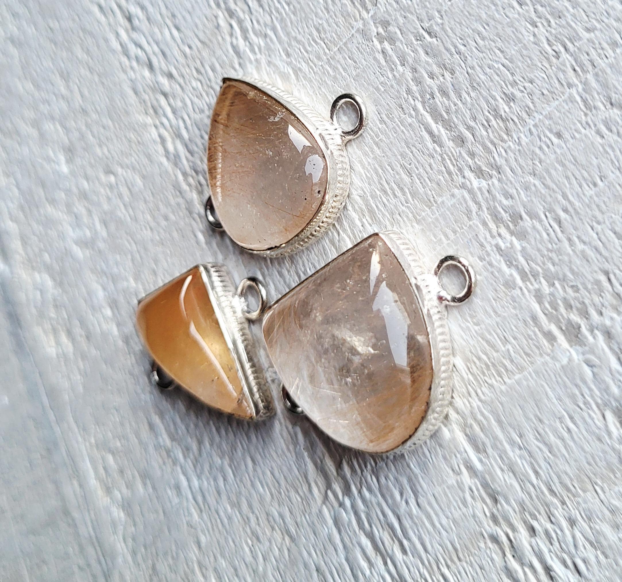 Citrine gemstone connectors with 2 holes. All different shapes in plain settings and 925 silver plated.