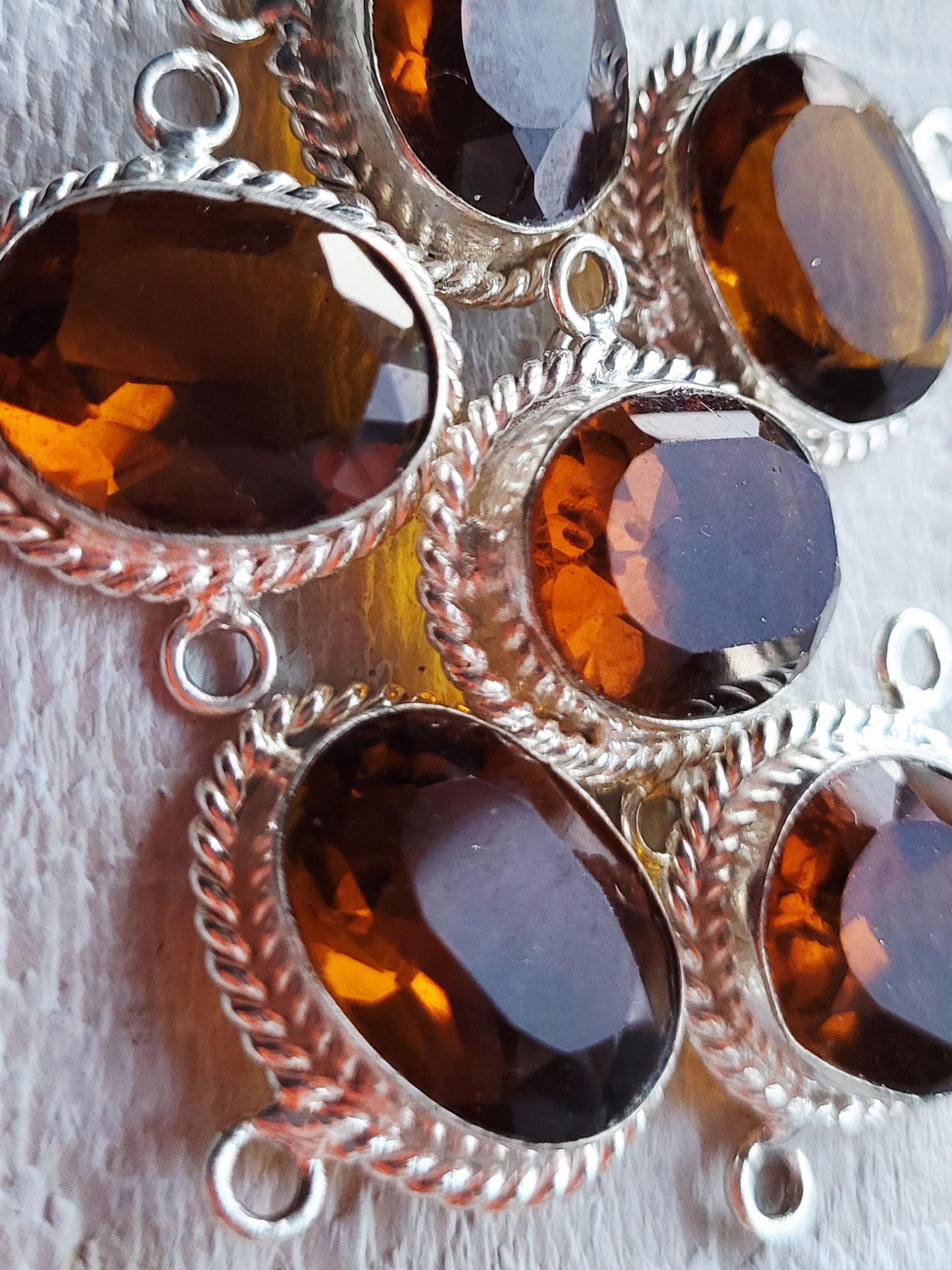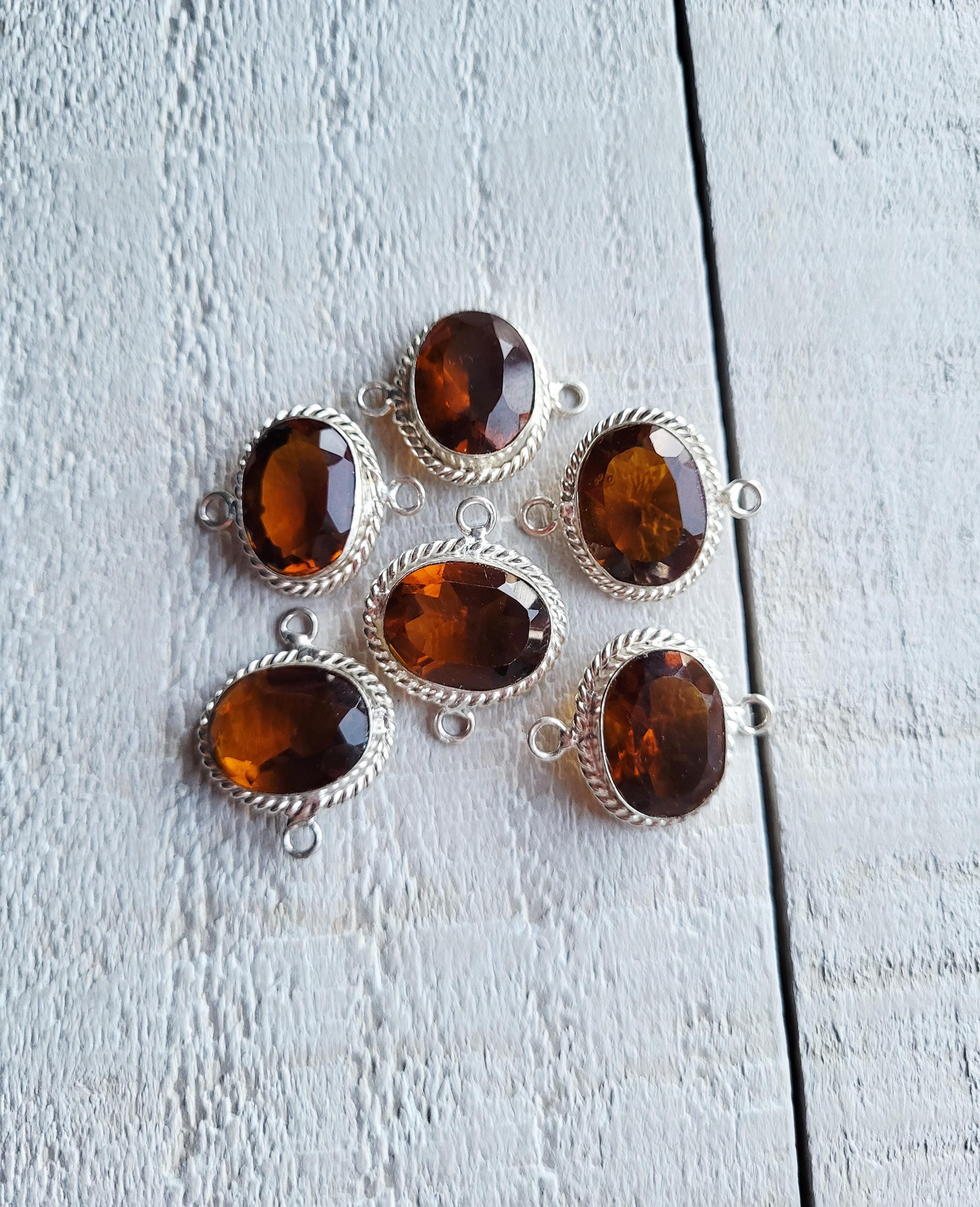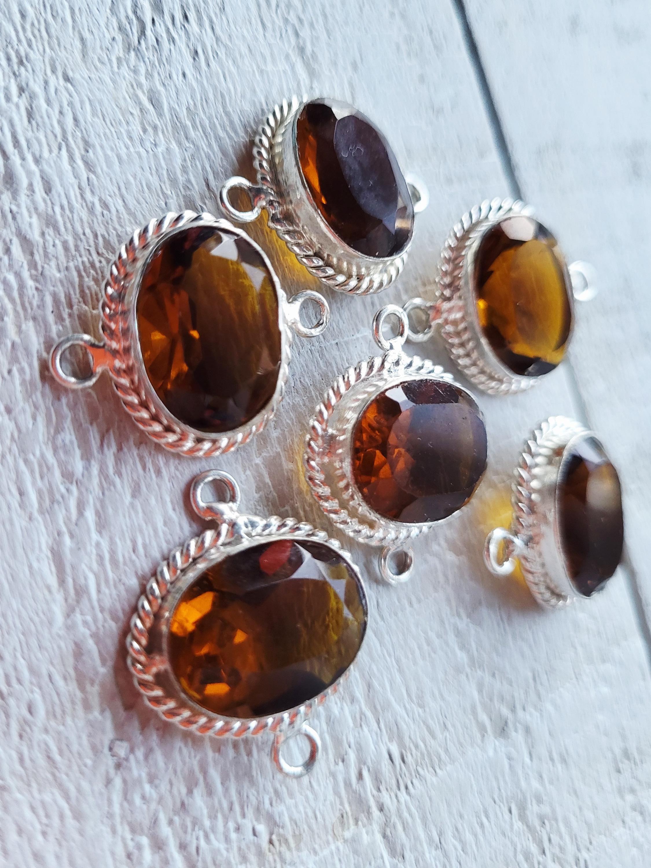 Faceted topaz gemstone connectors in a beautiful deep amber colour...Oval shaped in a simple 925 silver plated setting with 2 holes.