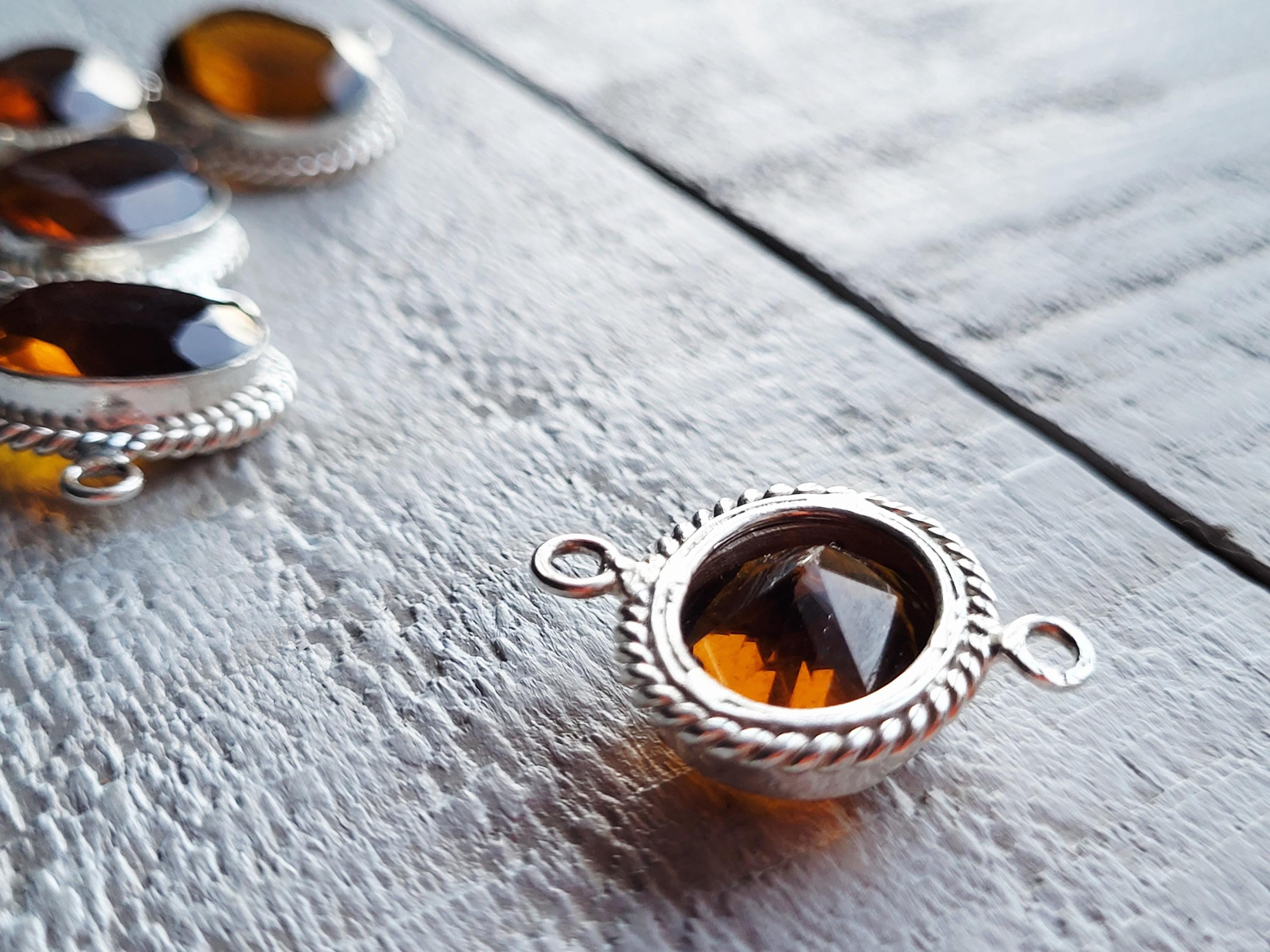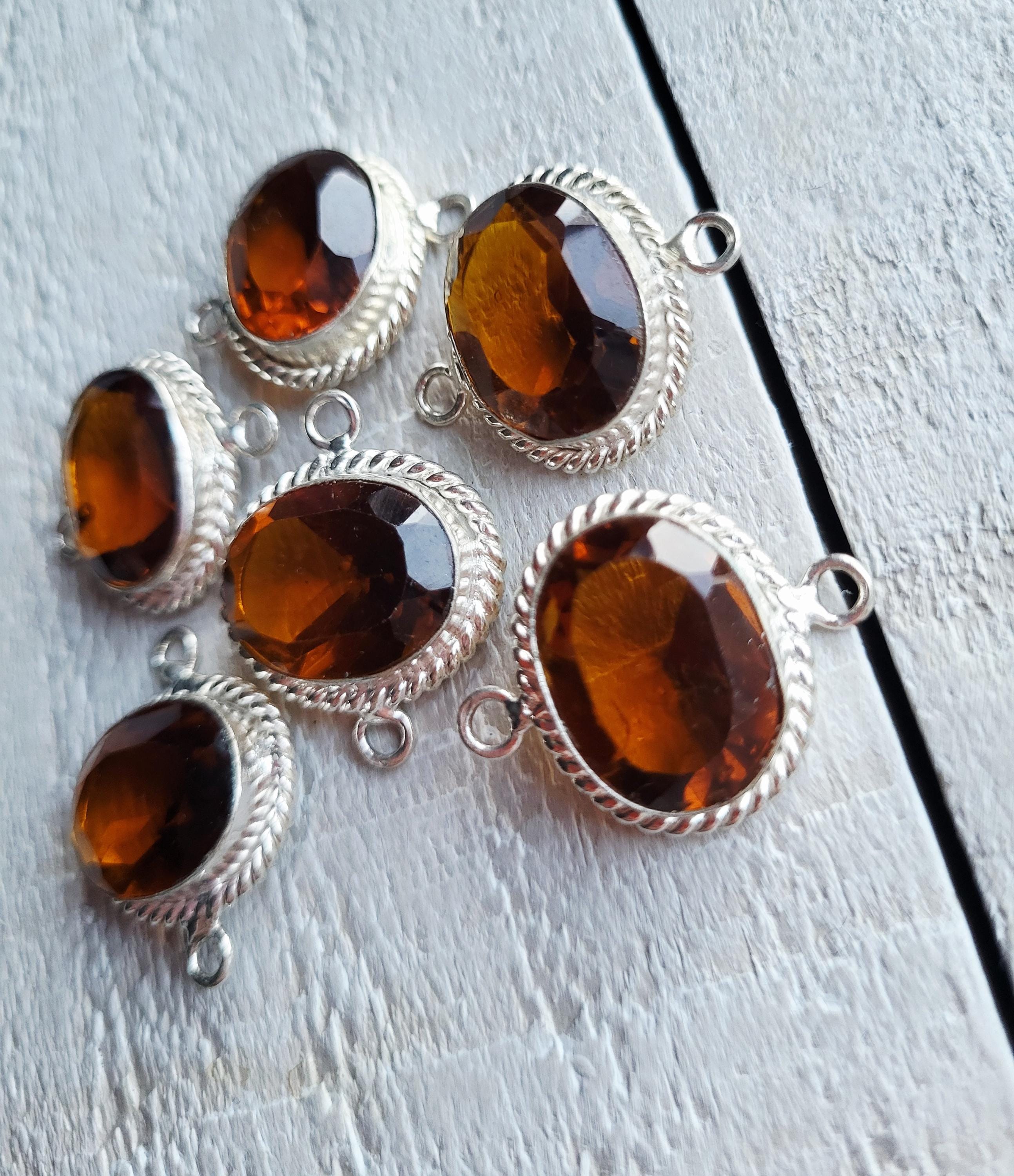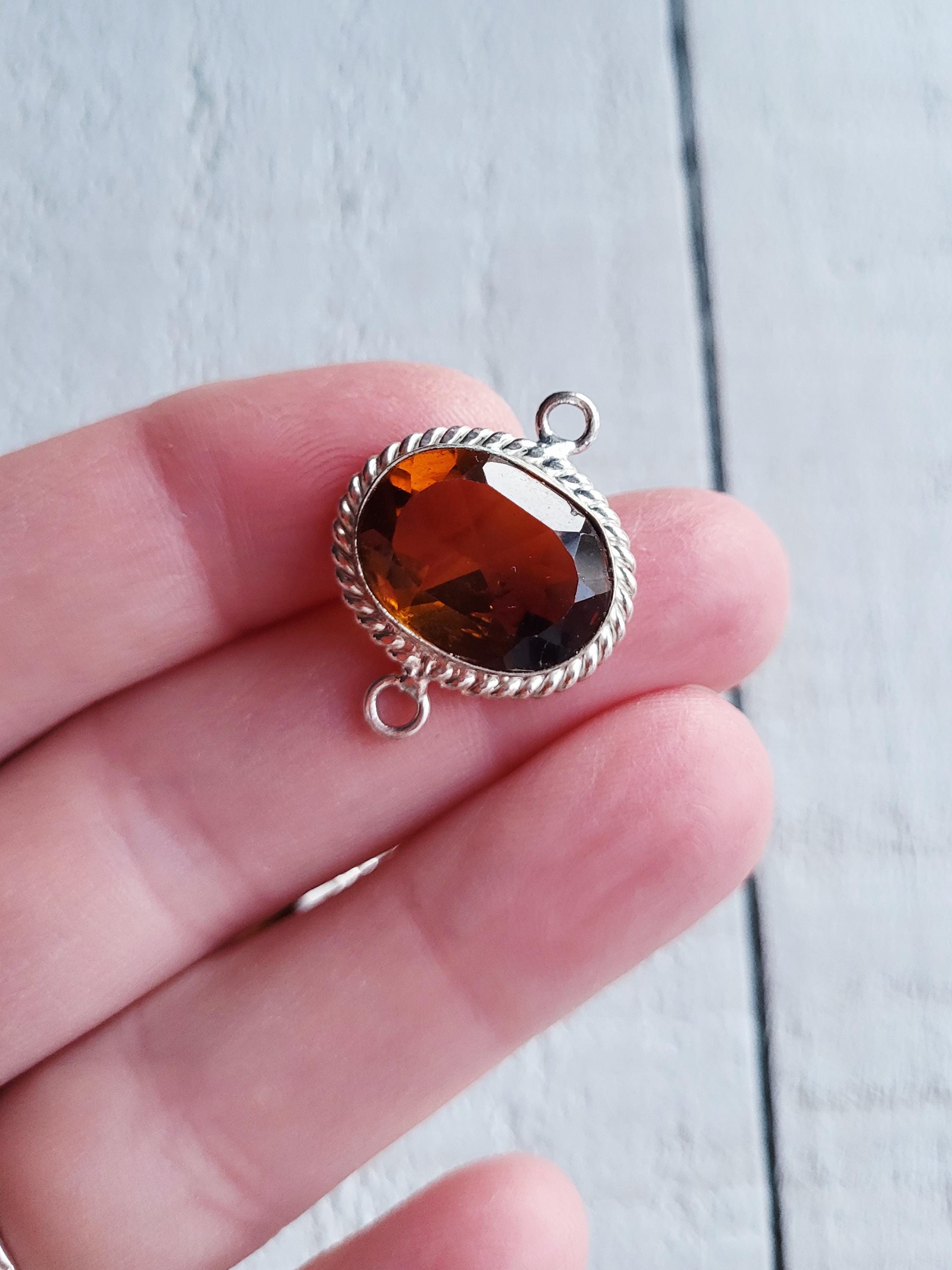 Faceted topaz gemstone connectors in a beautiful deep amber colour...Oval shaped in a simple 925 silver plated setting with 2 holes.