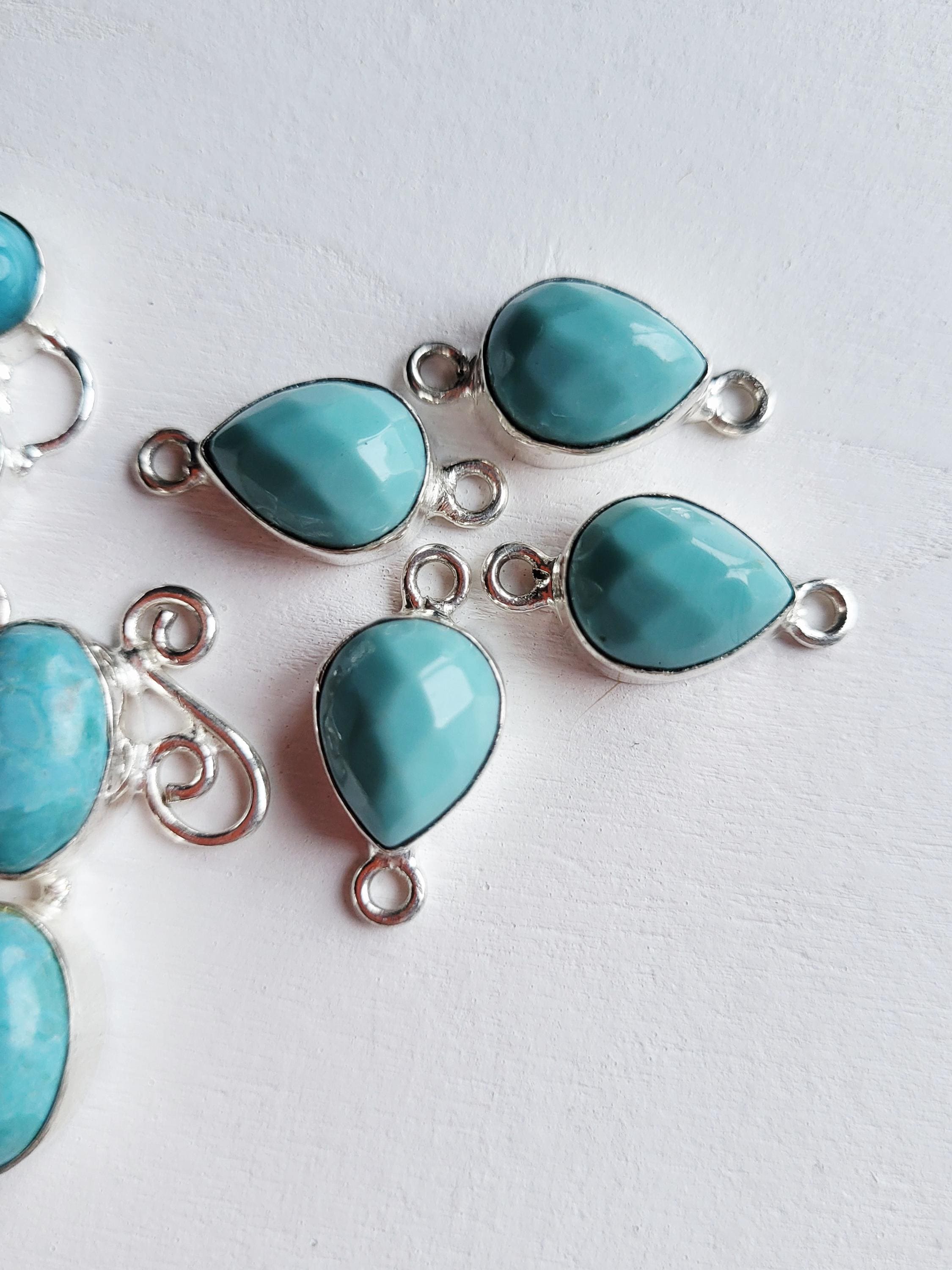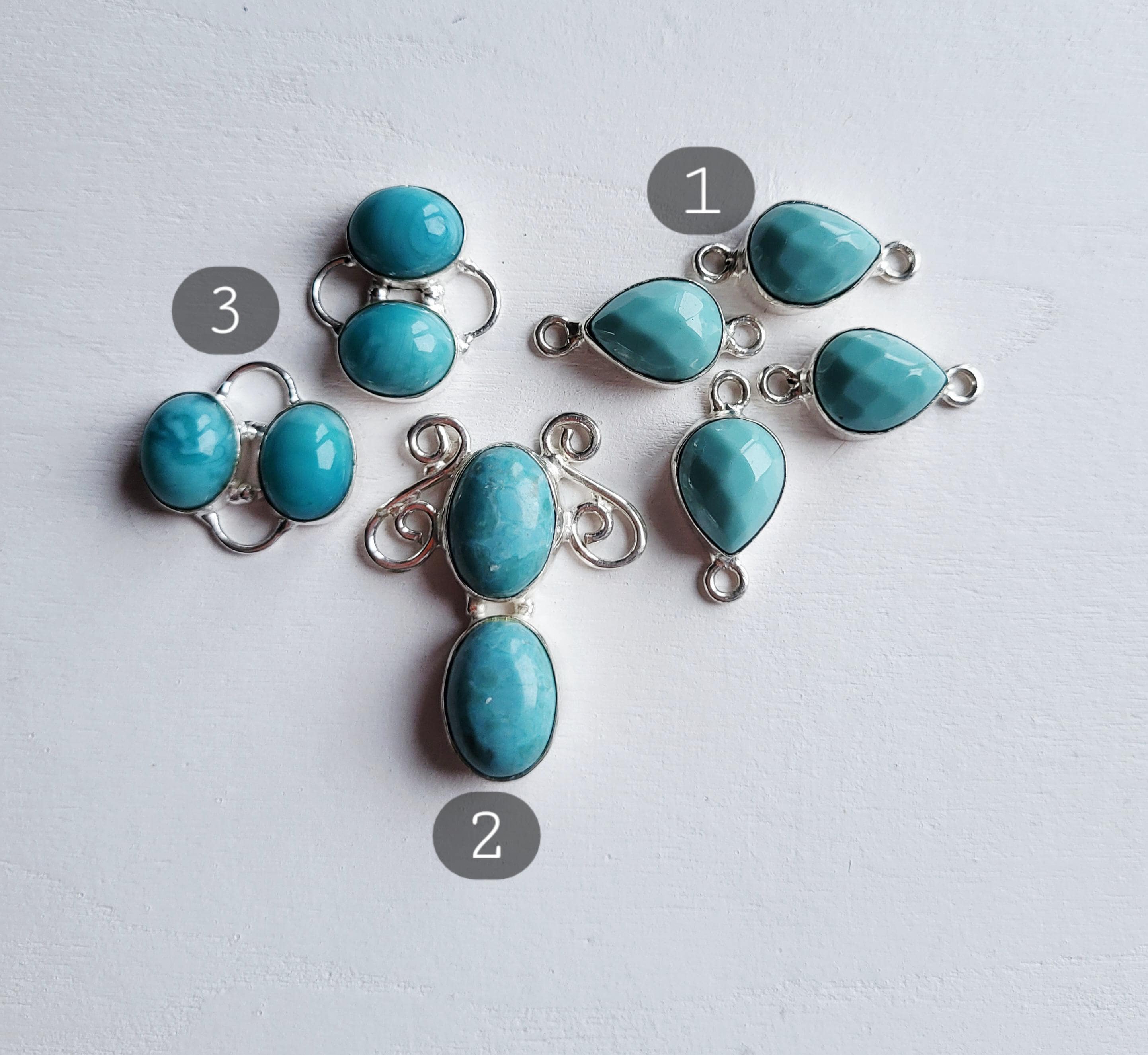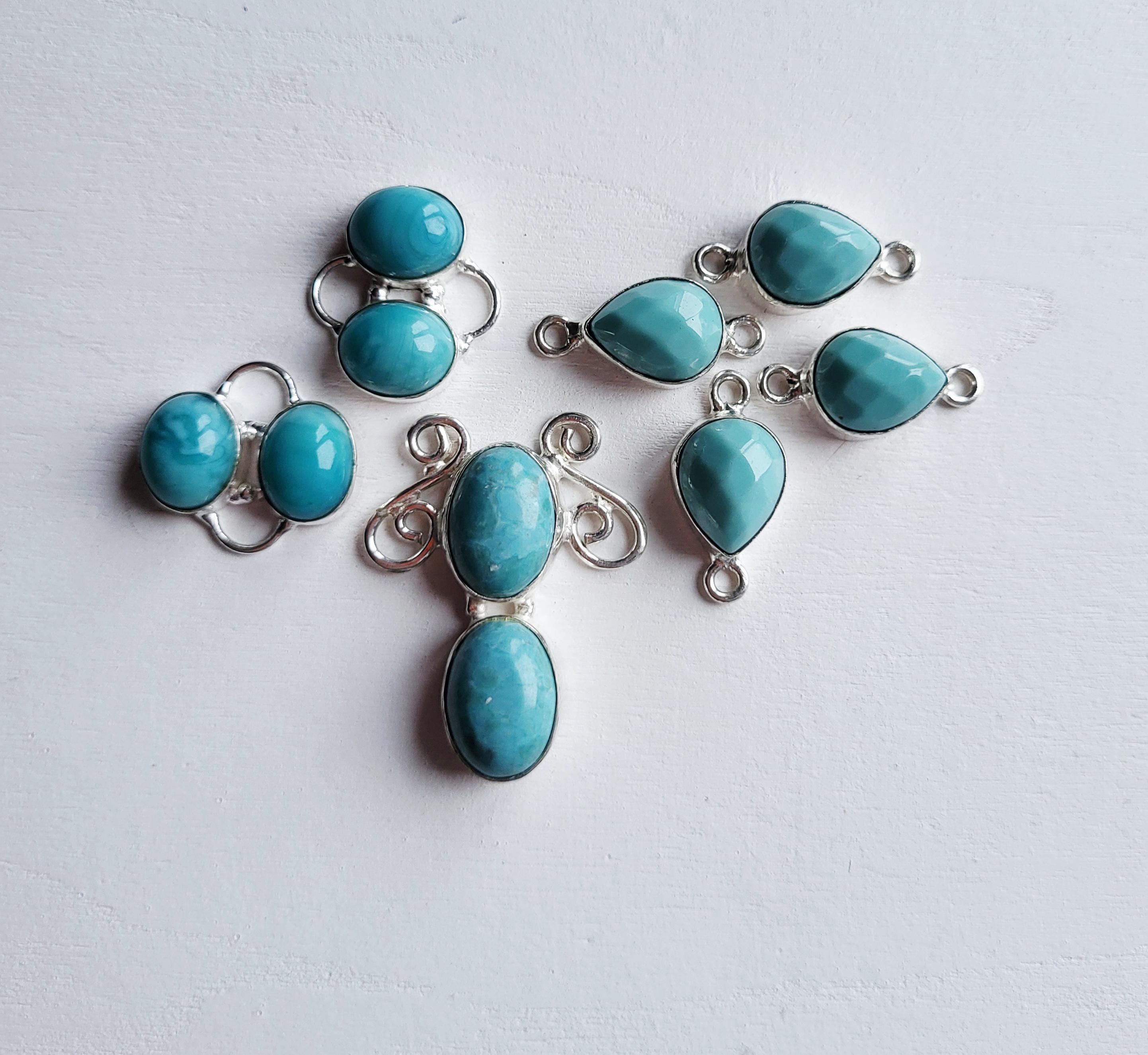 Blue chalcedony gemstone connectors. Different shapes and sizes in 925 silver plated settings