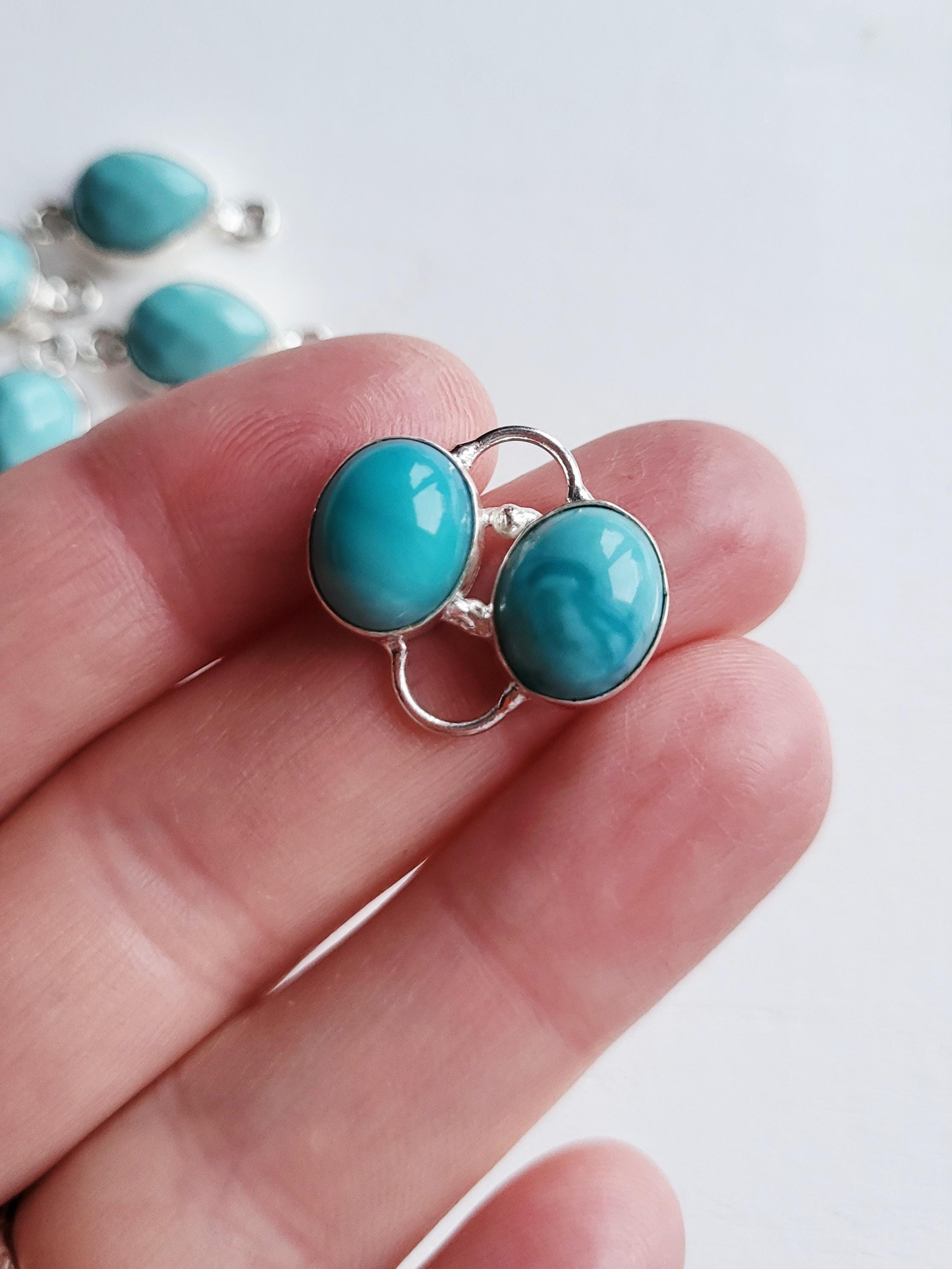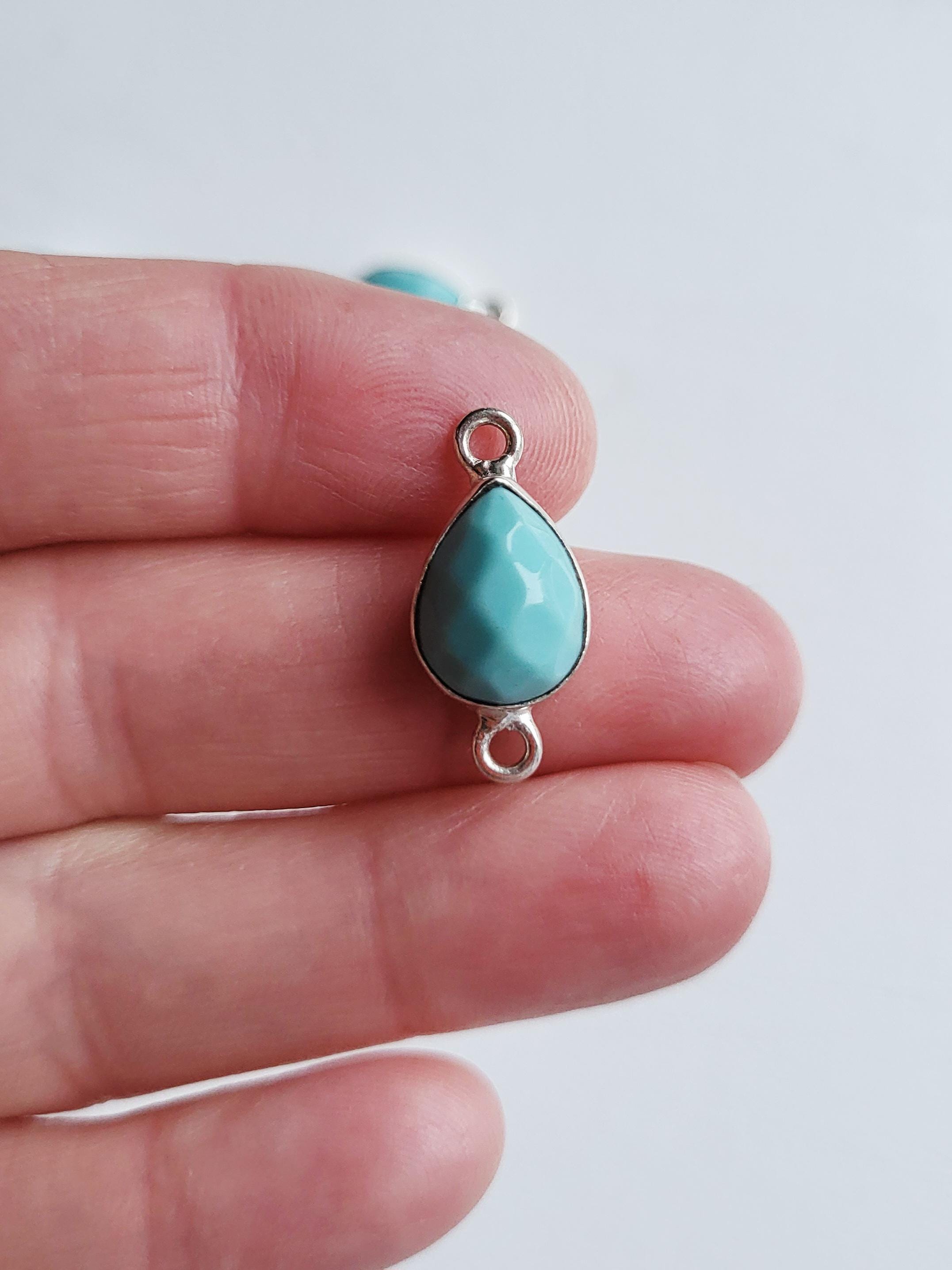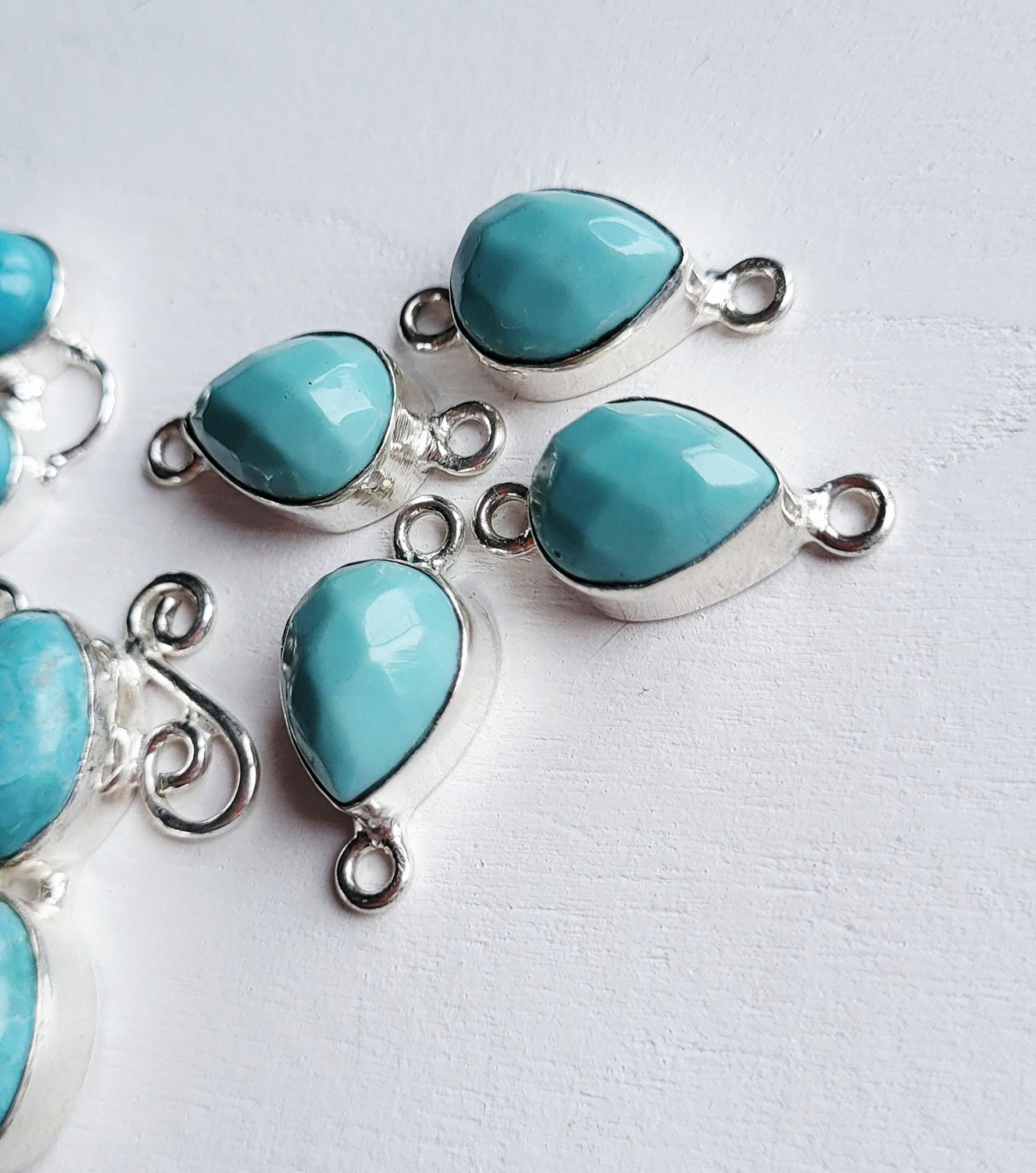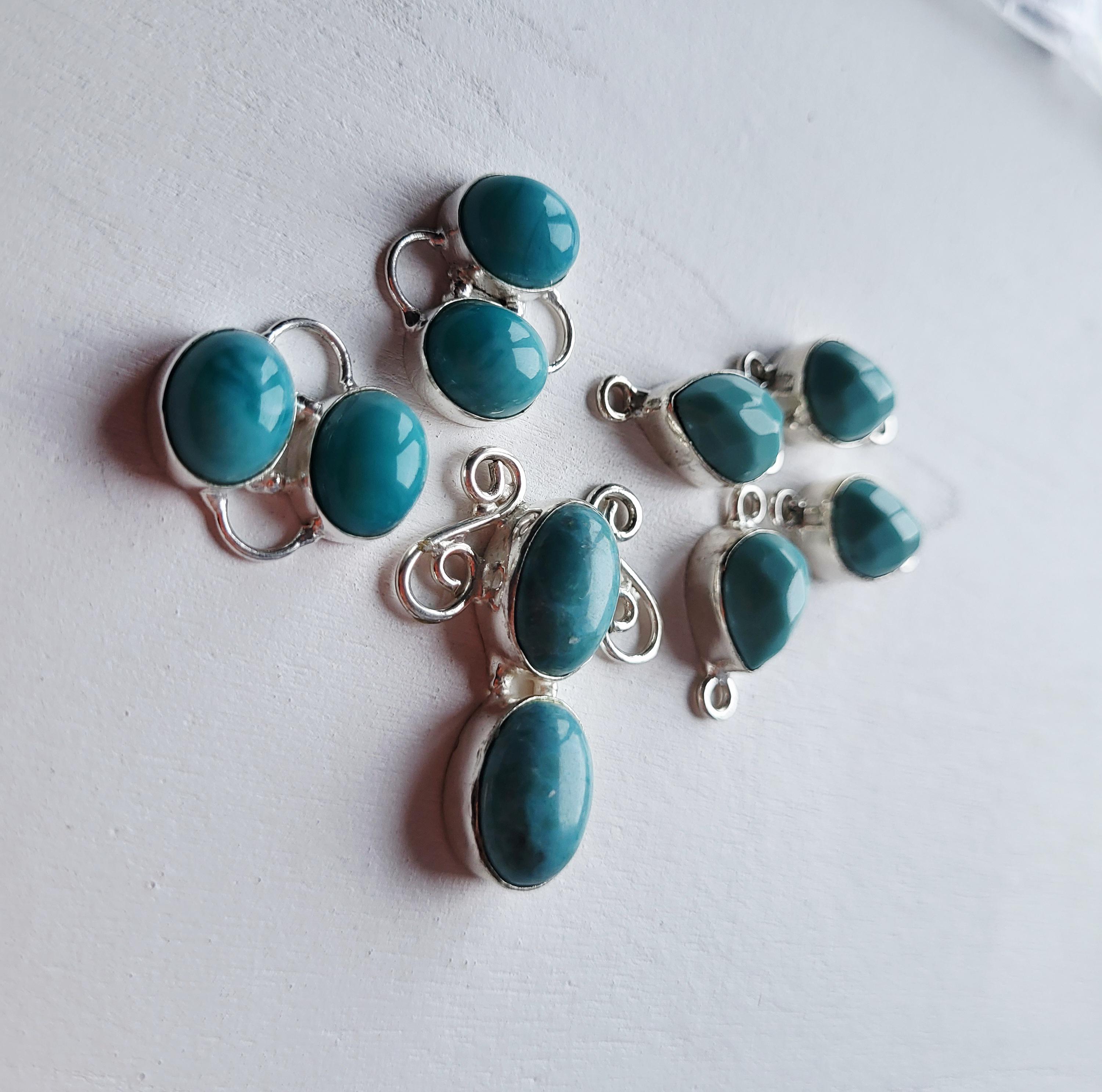 Blue chalcedony gemstone connectors. Different shapes and sizes in 925 silver plated settings