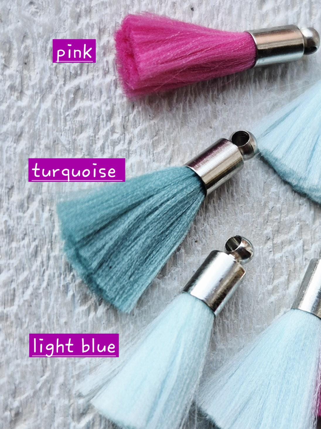 Pretty silky tassels with stainless steel caps...make great little charm