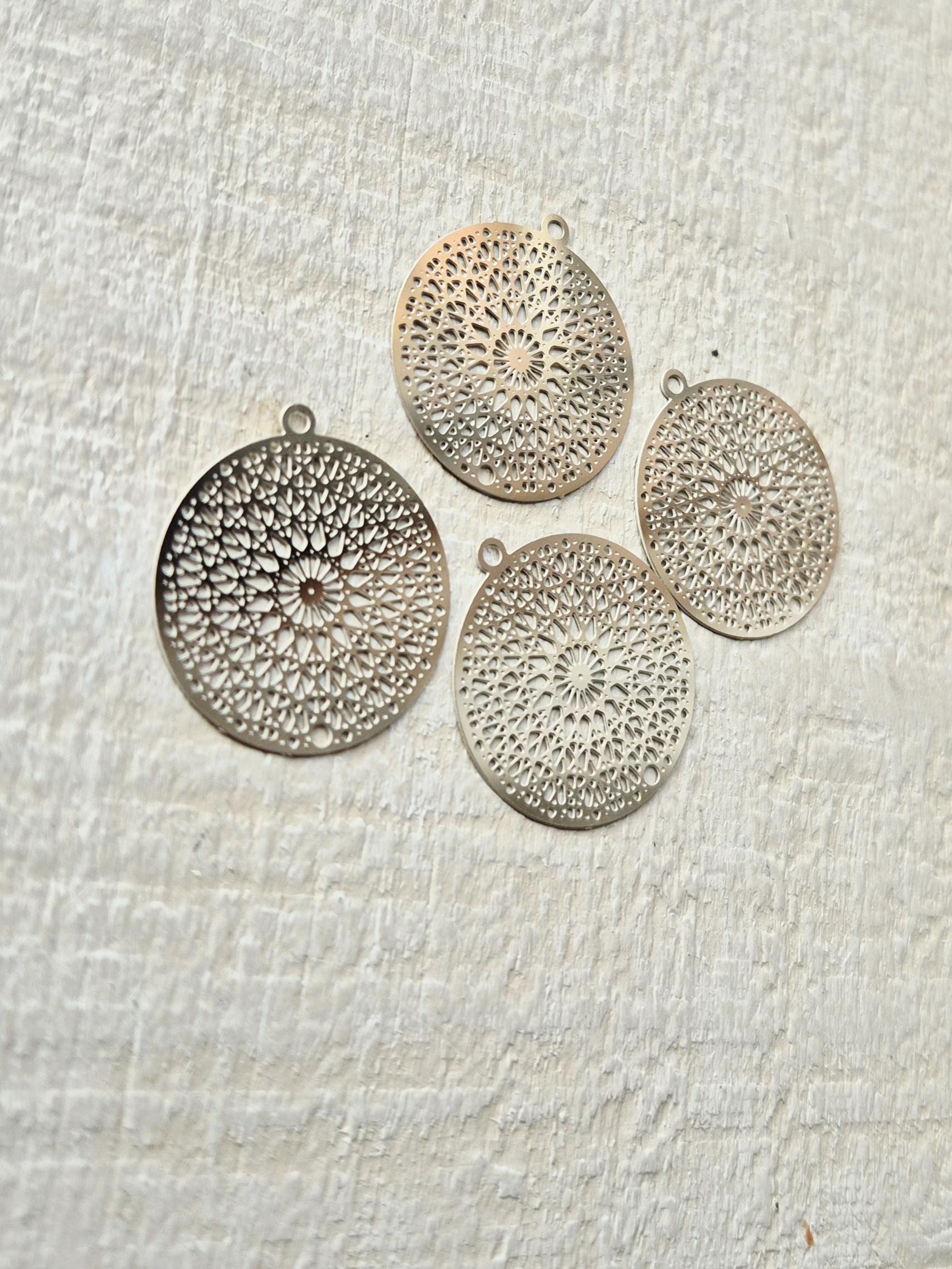 Lazor cut stainless steel pendant with mandala design. 2 holes