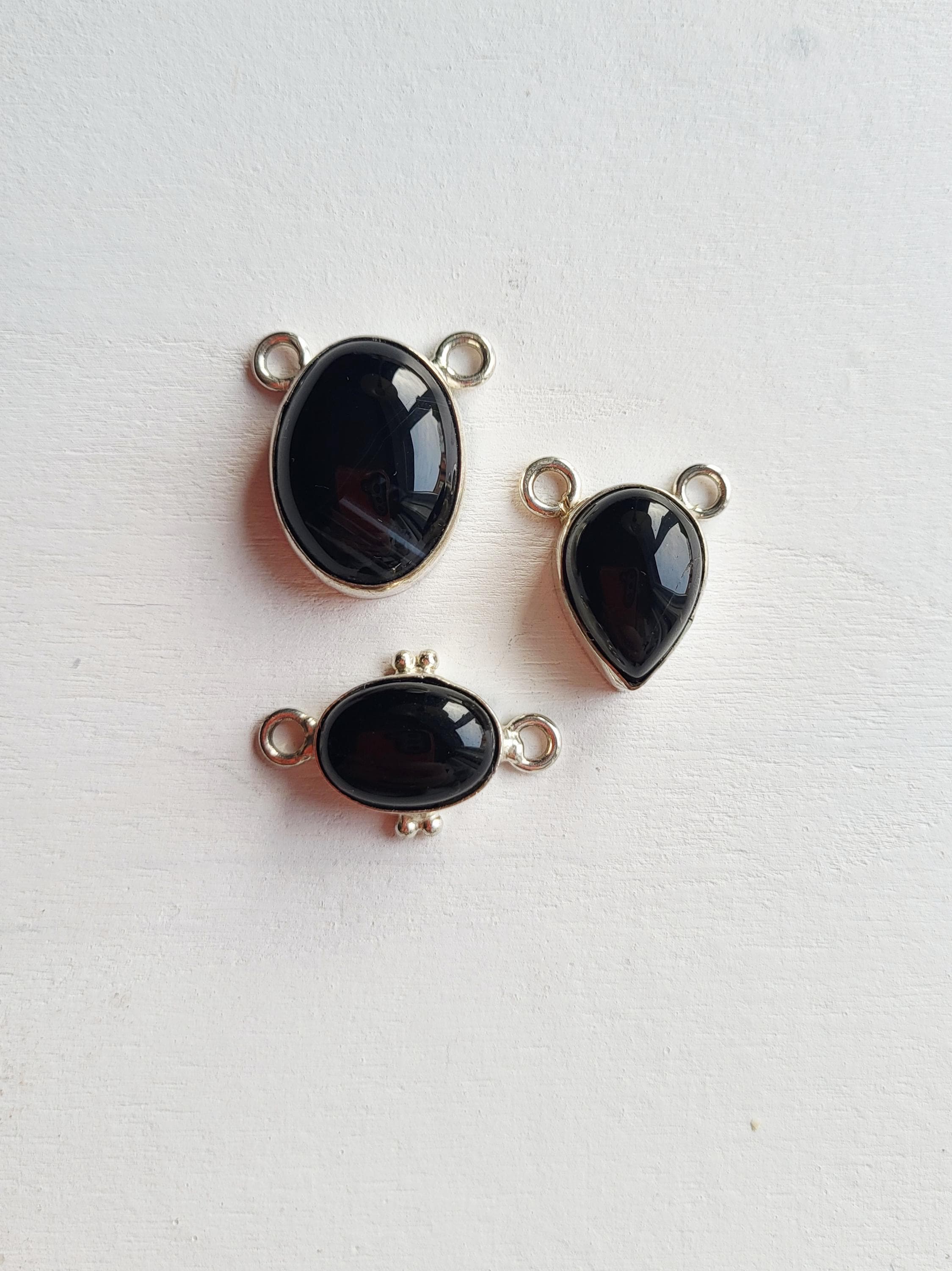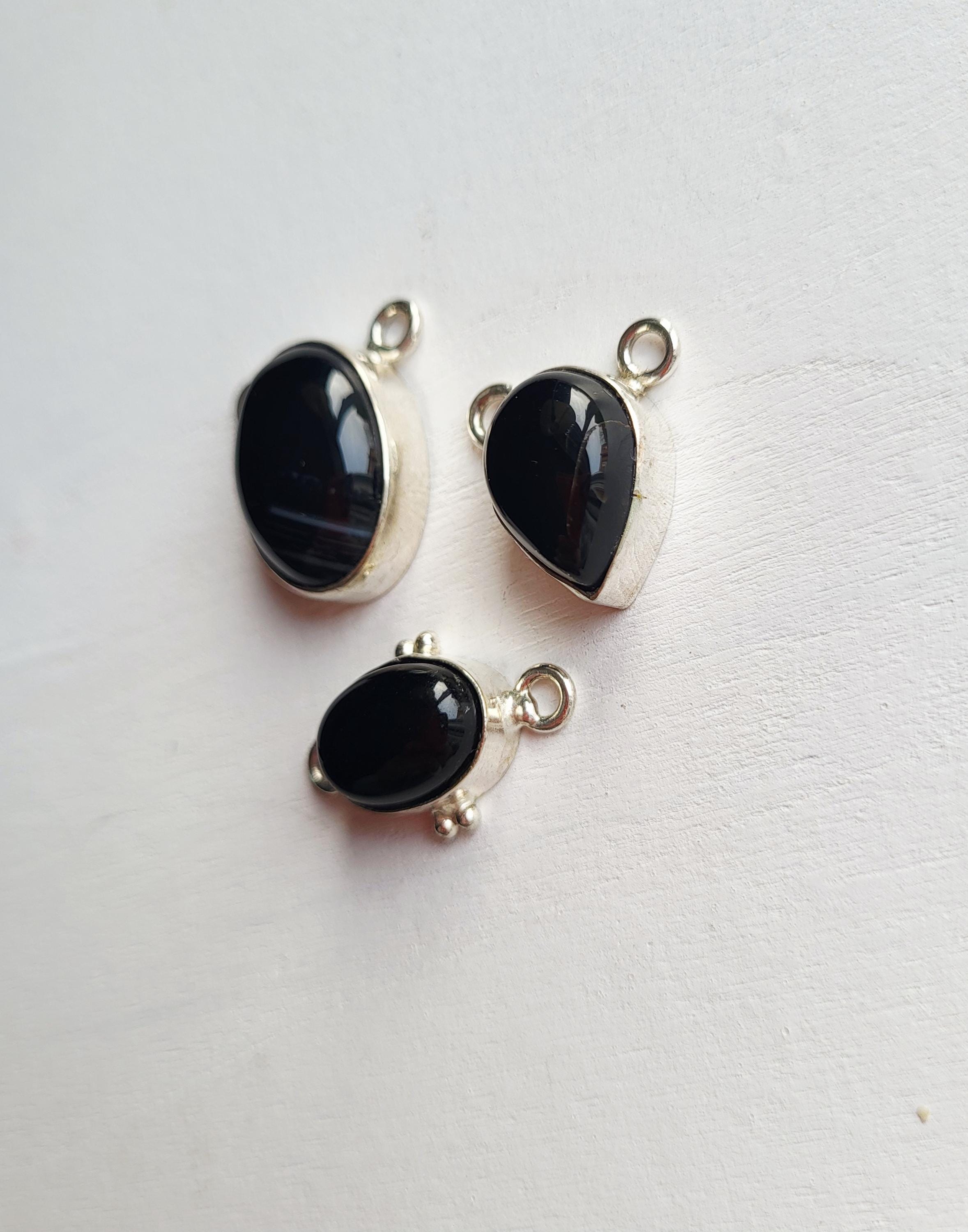 2. Black onyx, teardrop shaped stone in a plain 925 plated setting