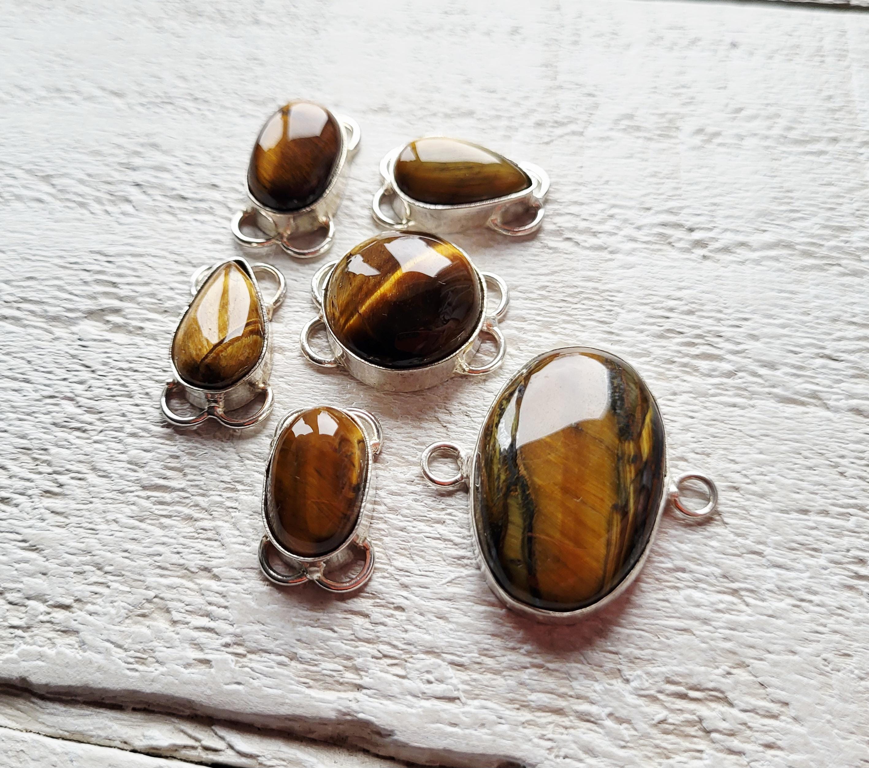 Gorgeous tiger iron connectors. Tiger iron is tigers eye but it has hematite through it to give that metallic look. Great to use on necklaces or bracelets.