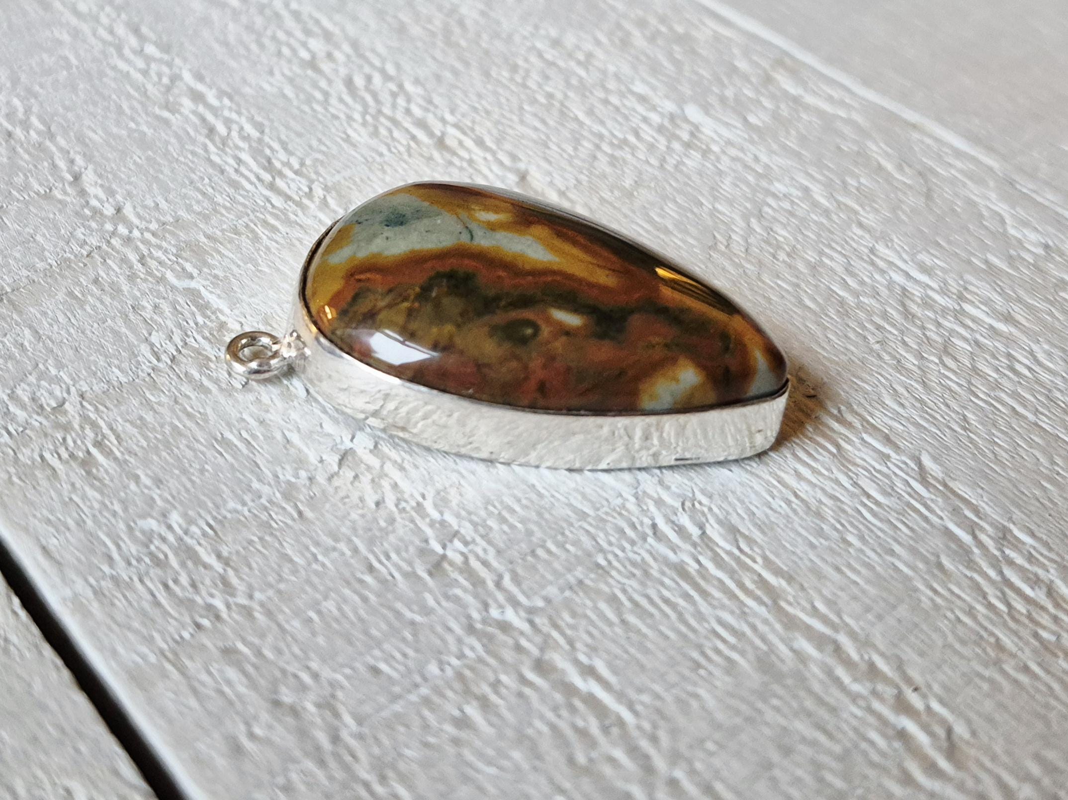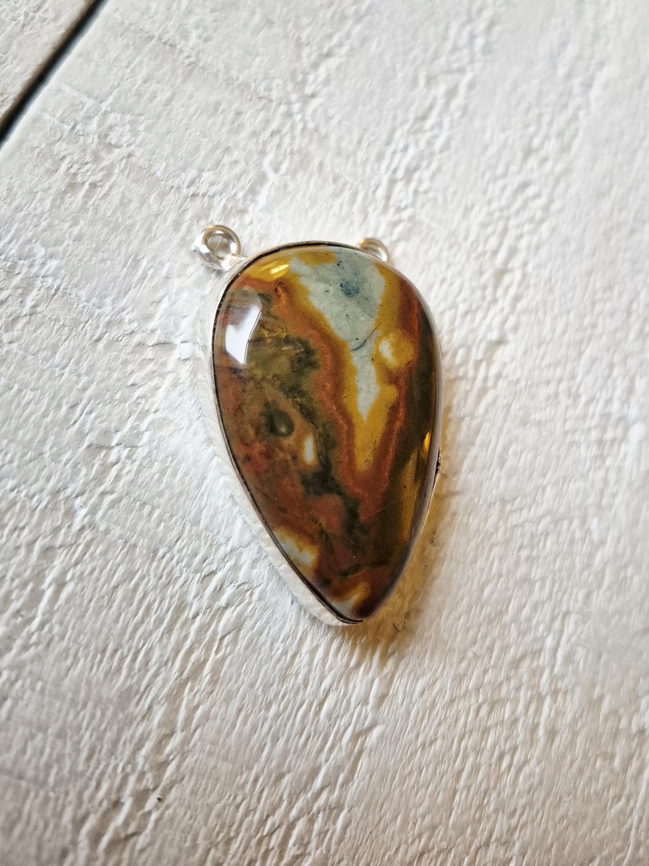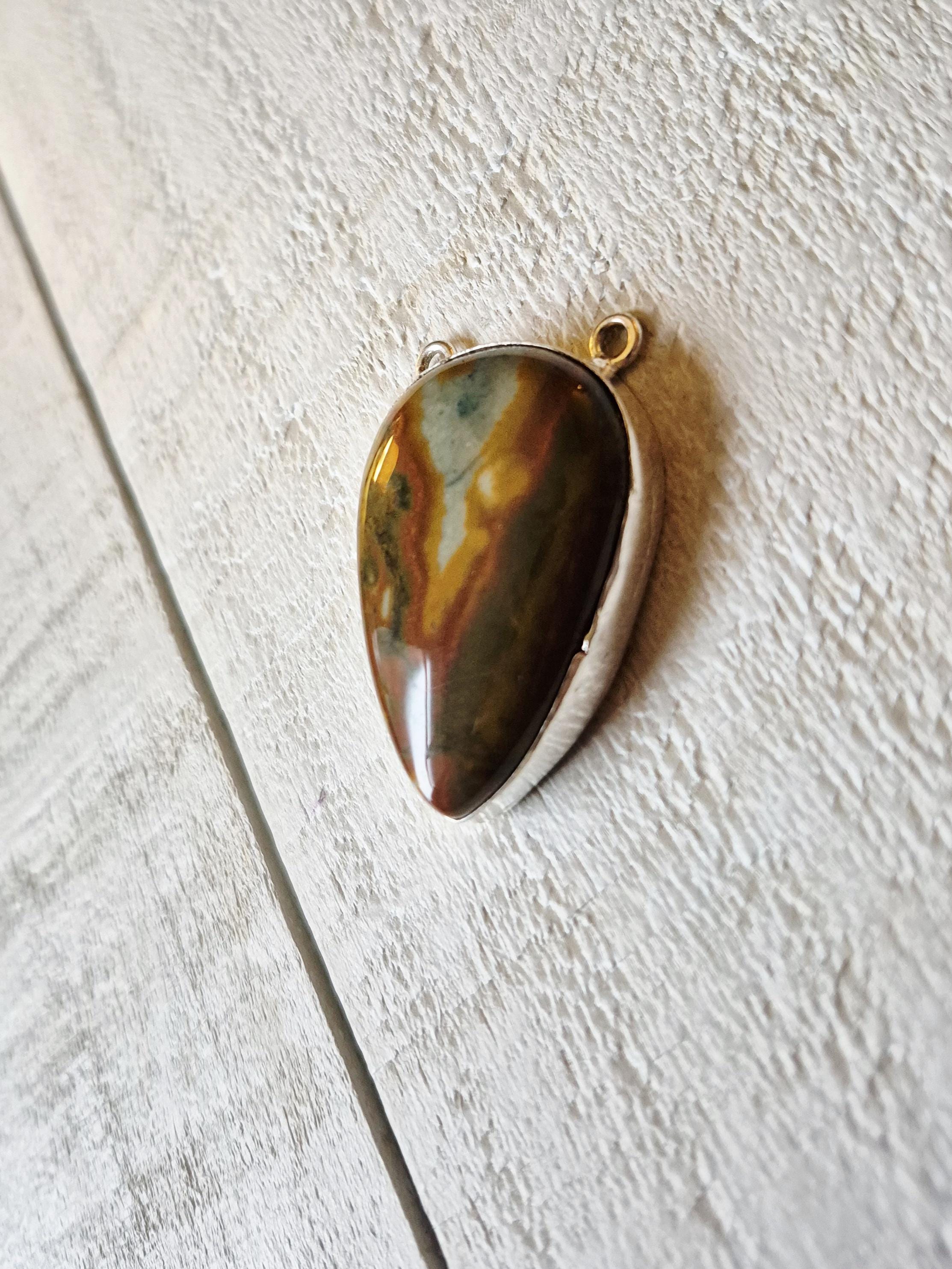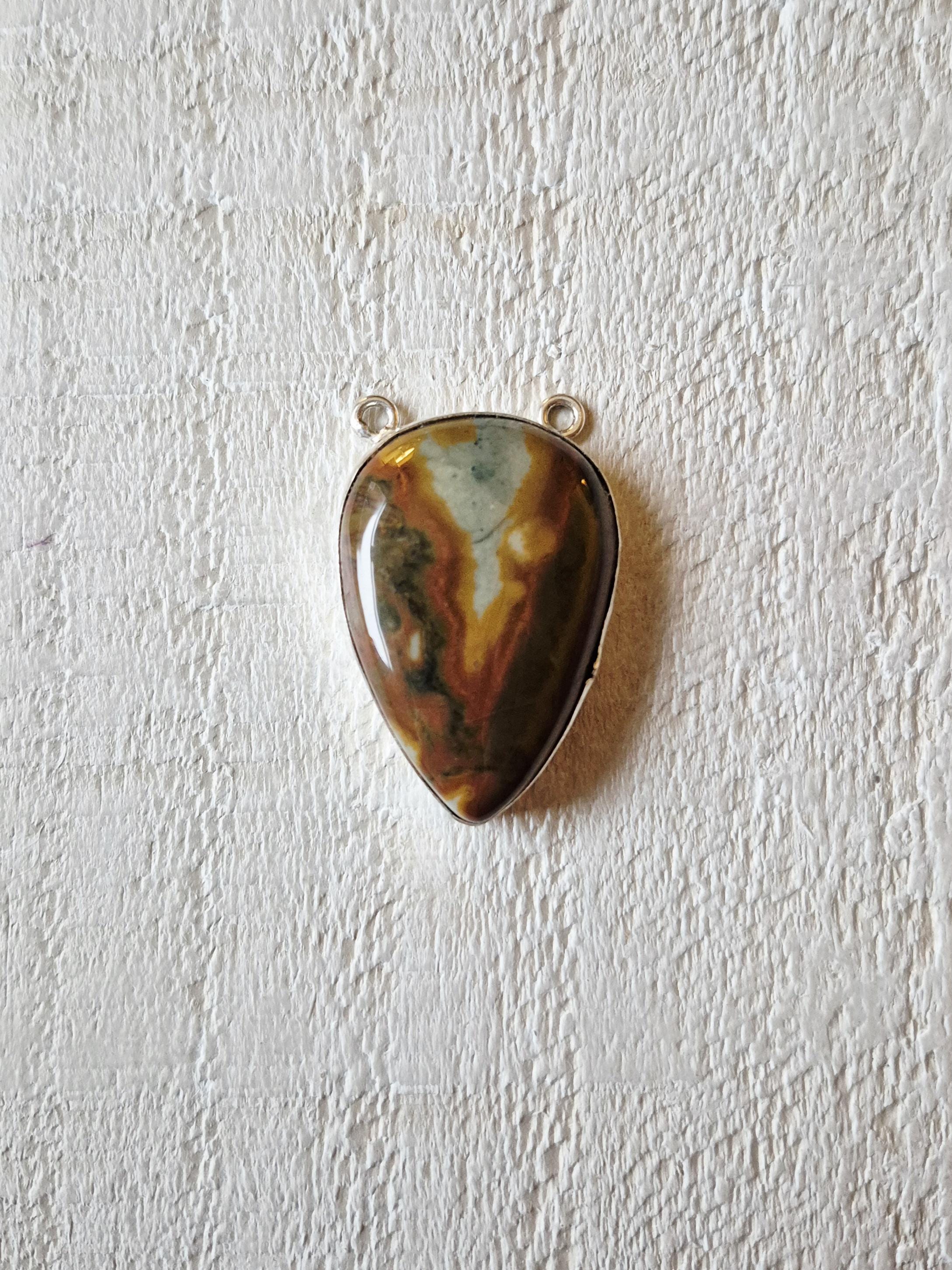 Picasso jasper, teardrop gemstone in a 925 silver plated setting.
