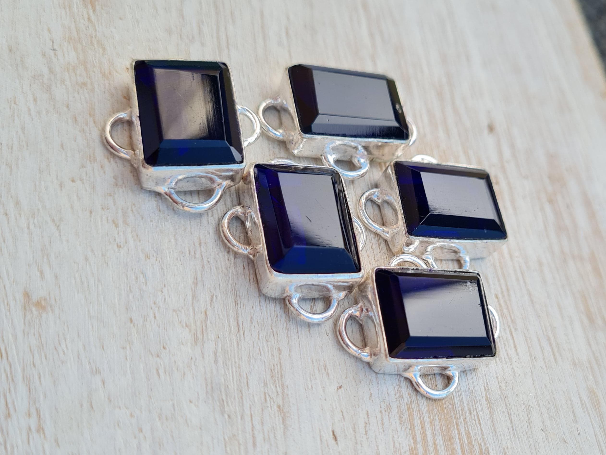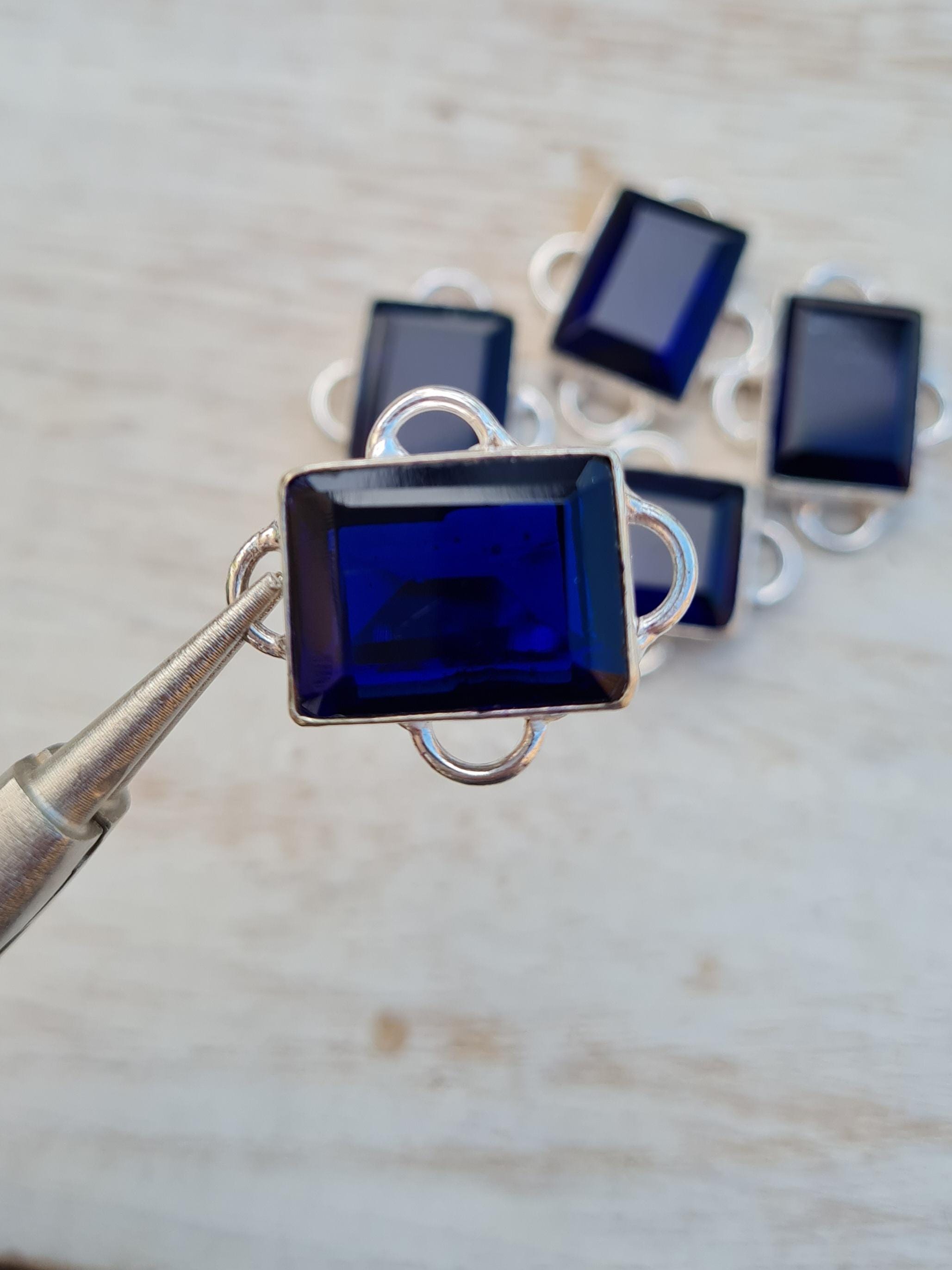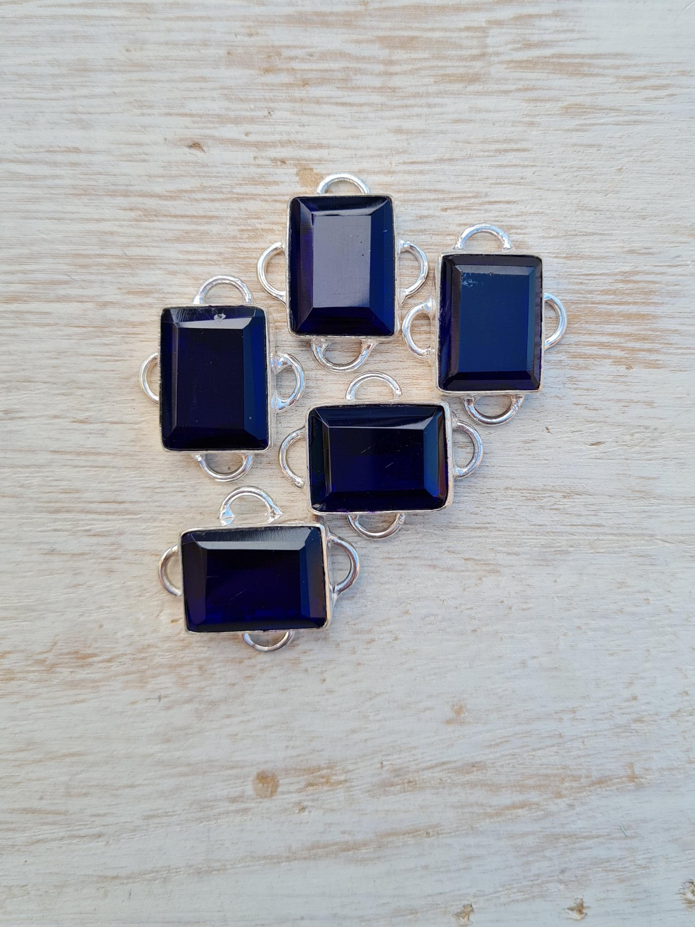 Rectangular shaped gemstone connectors. Beautiful blue iolite stones all in 925 silver plated settings