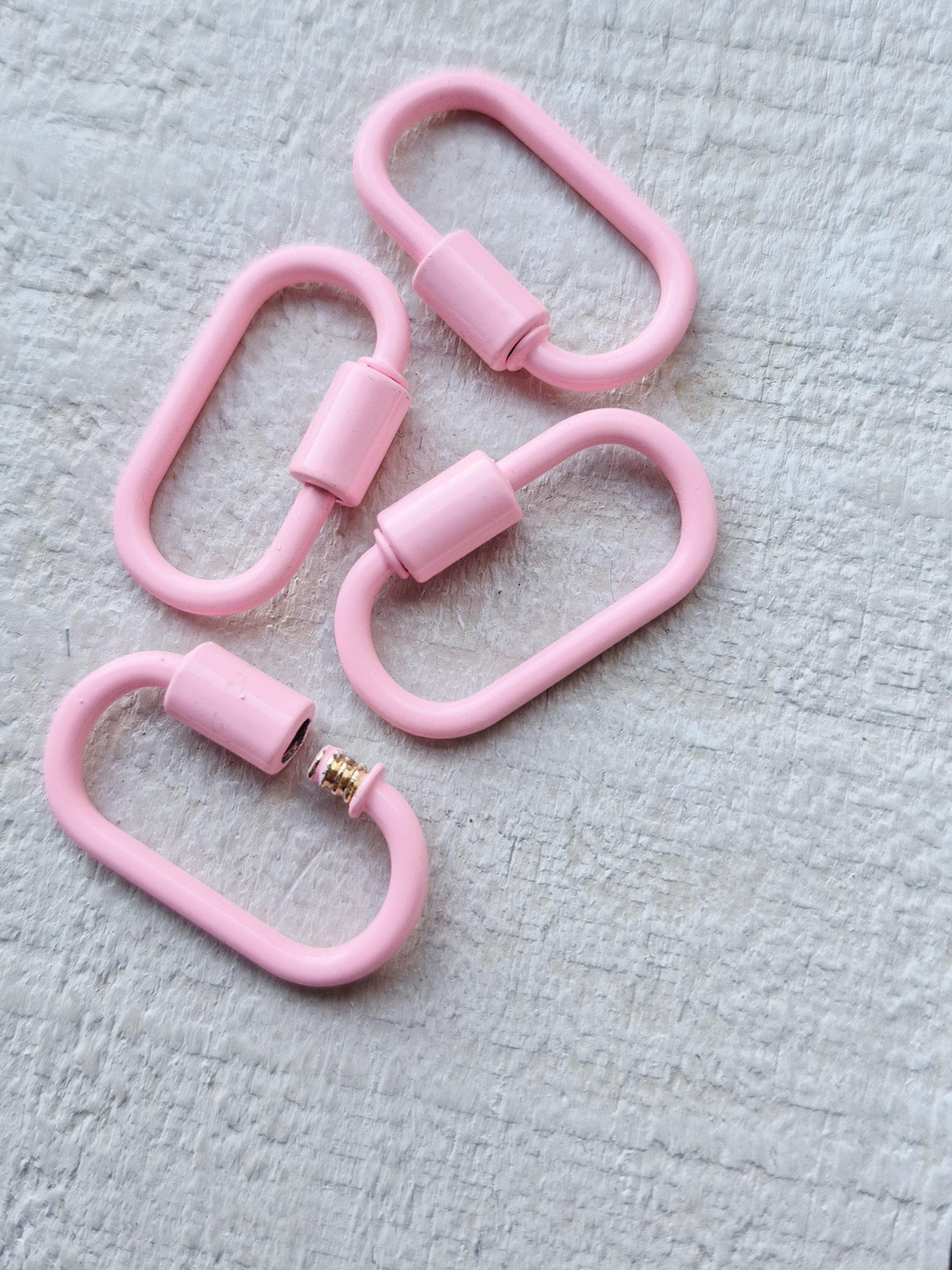 Screw fastening pink carabiner style fastening