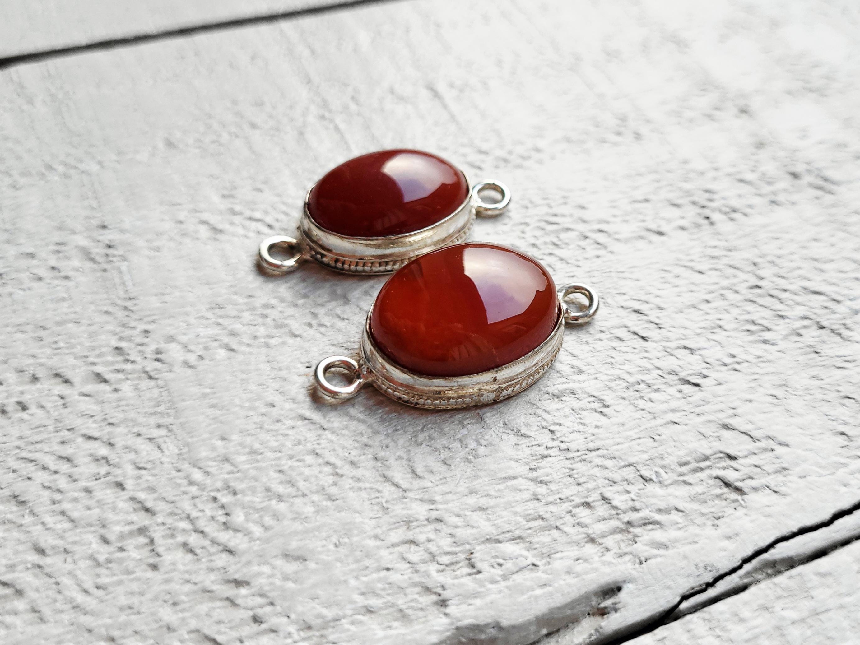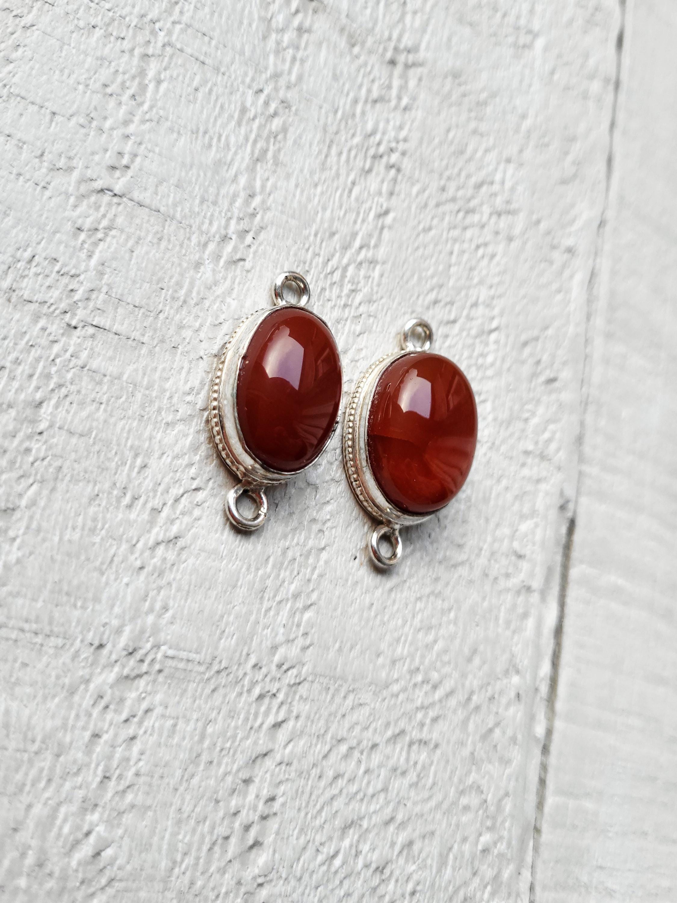 Oval shaped carnelian gemstones in 925 silver plated setting.