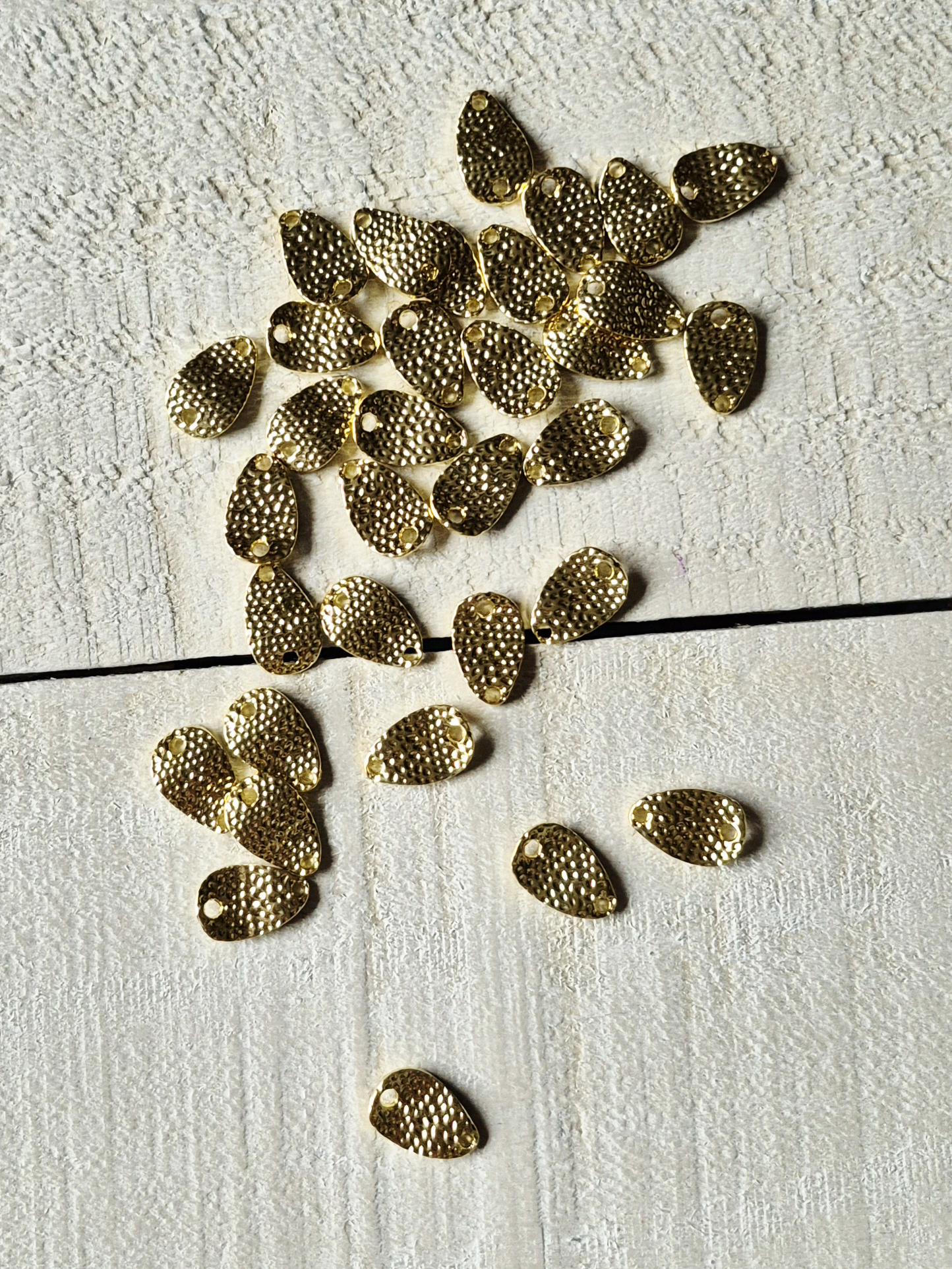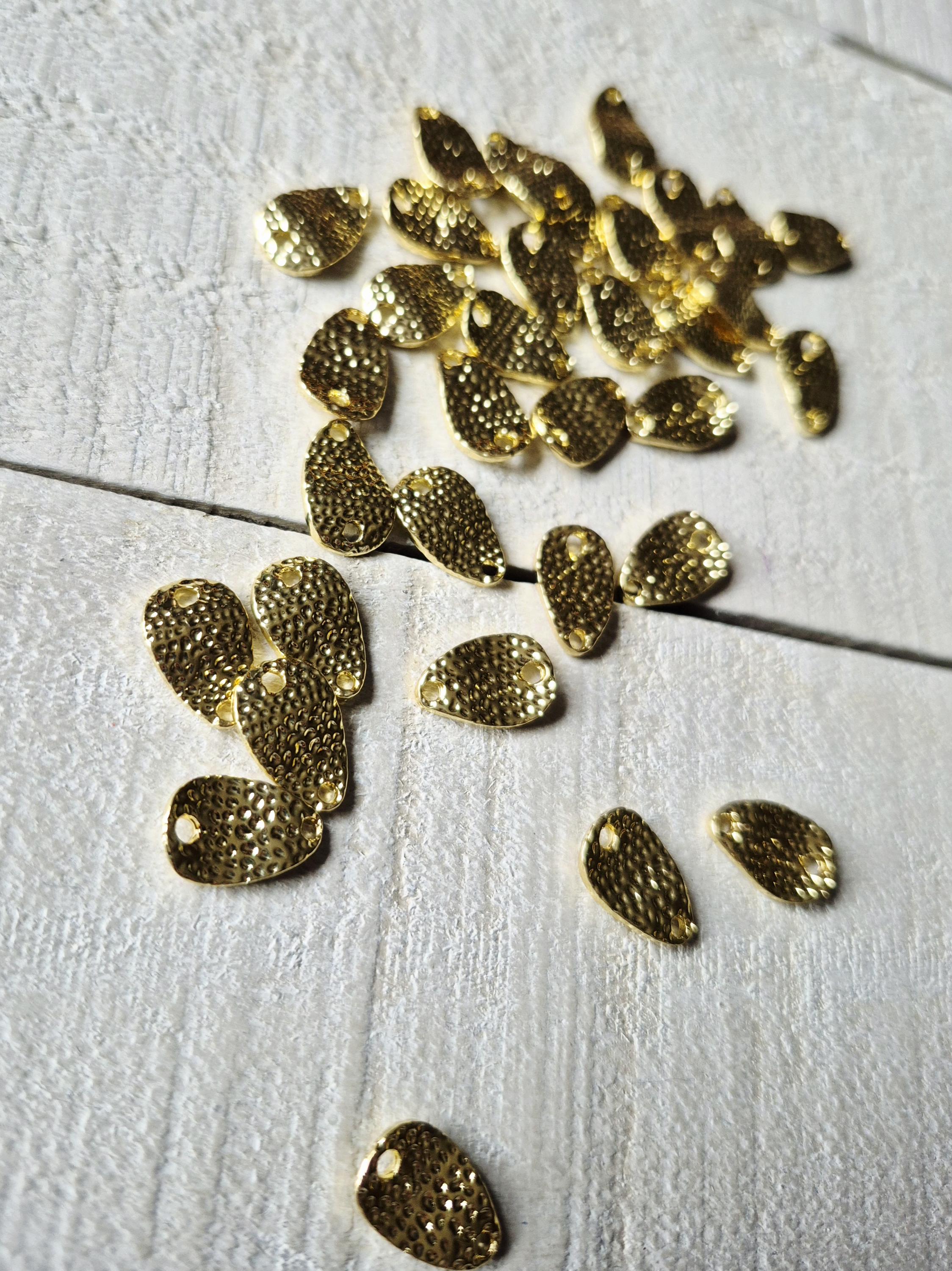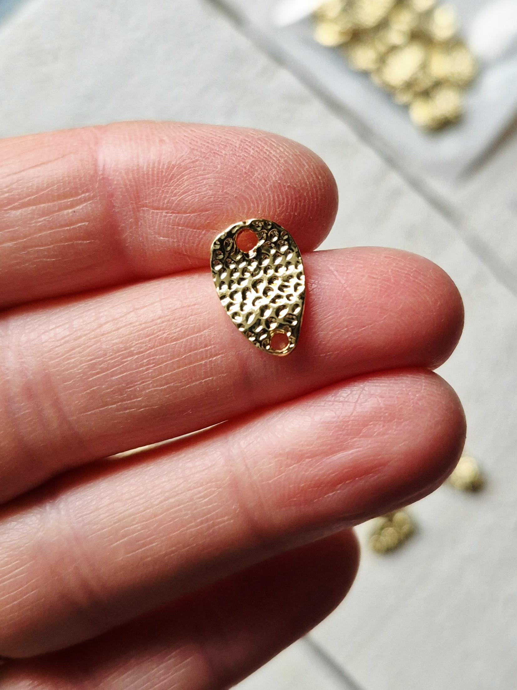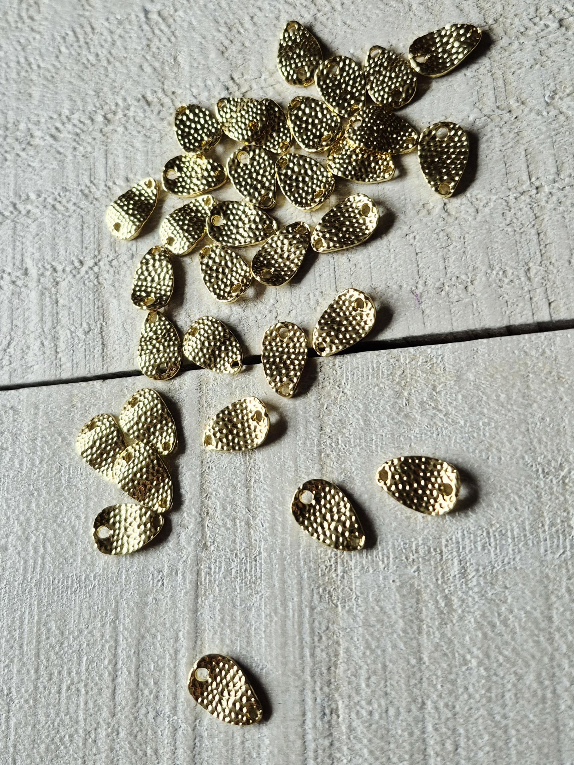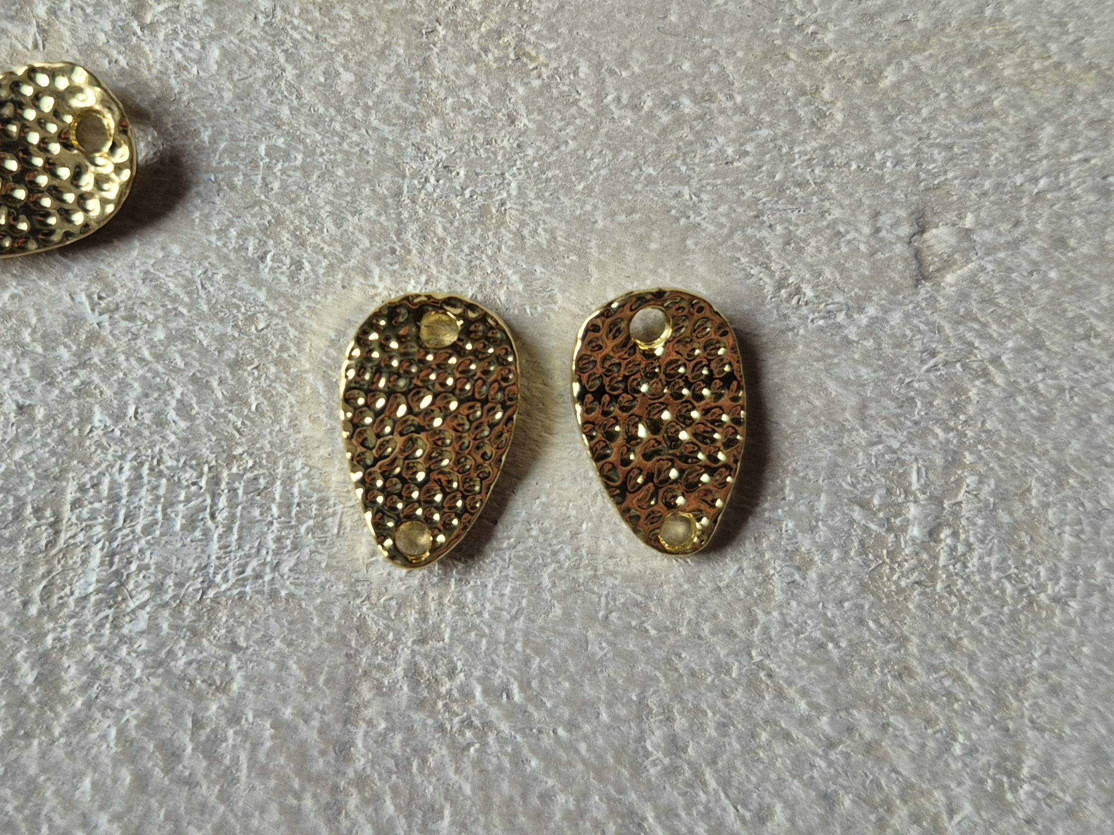 Wavy connectors, teardrop shaped and textured with 2 holes.