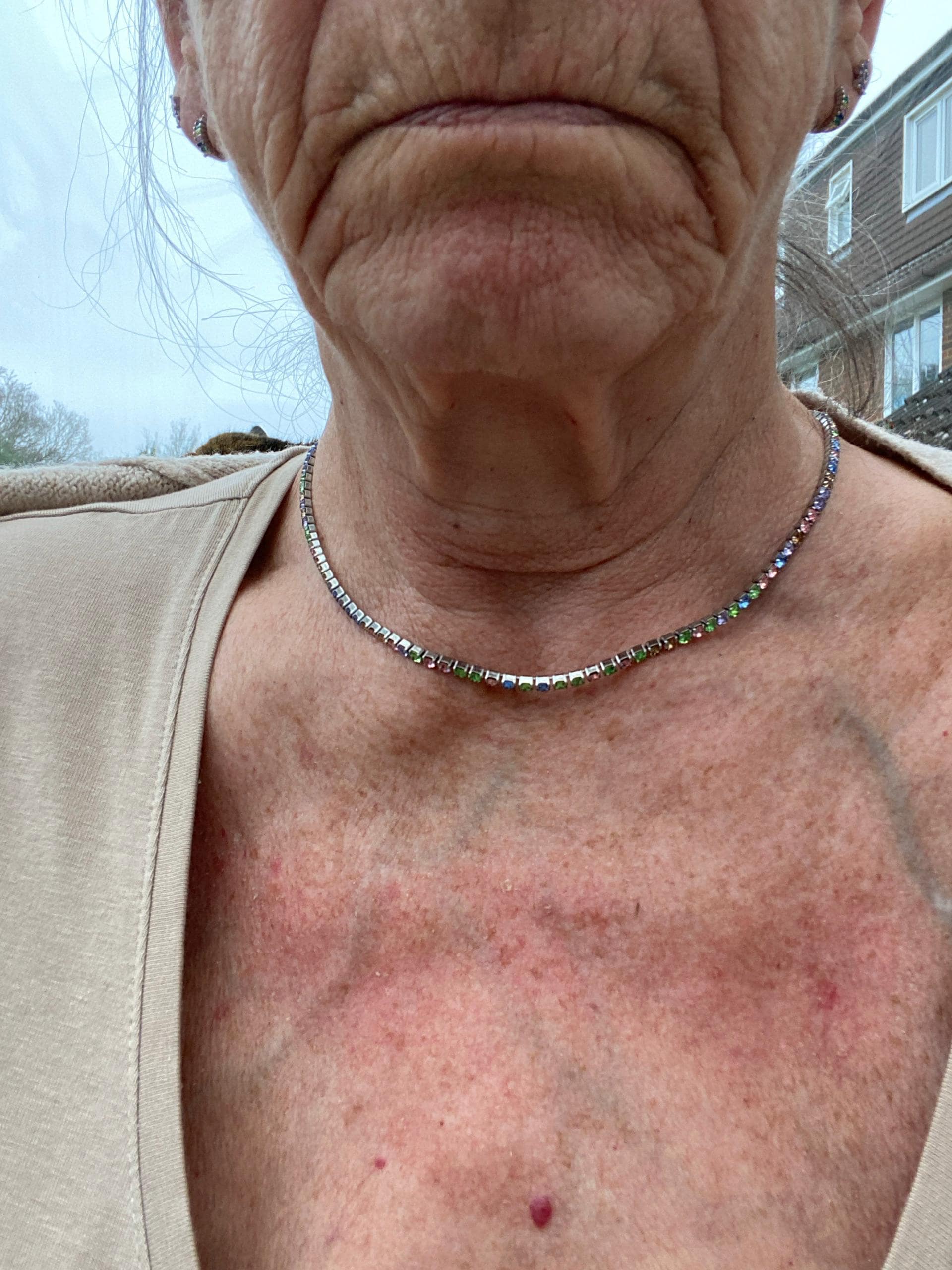 Pretty multicoloured cz necklace in stainless steel. Non Tarnish and perfect for every night out and layering with steel jewellery.