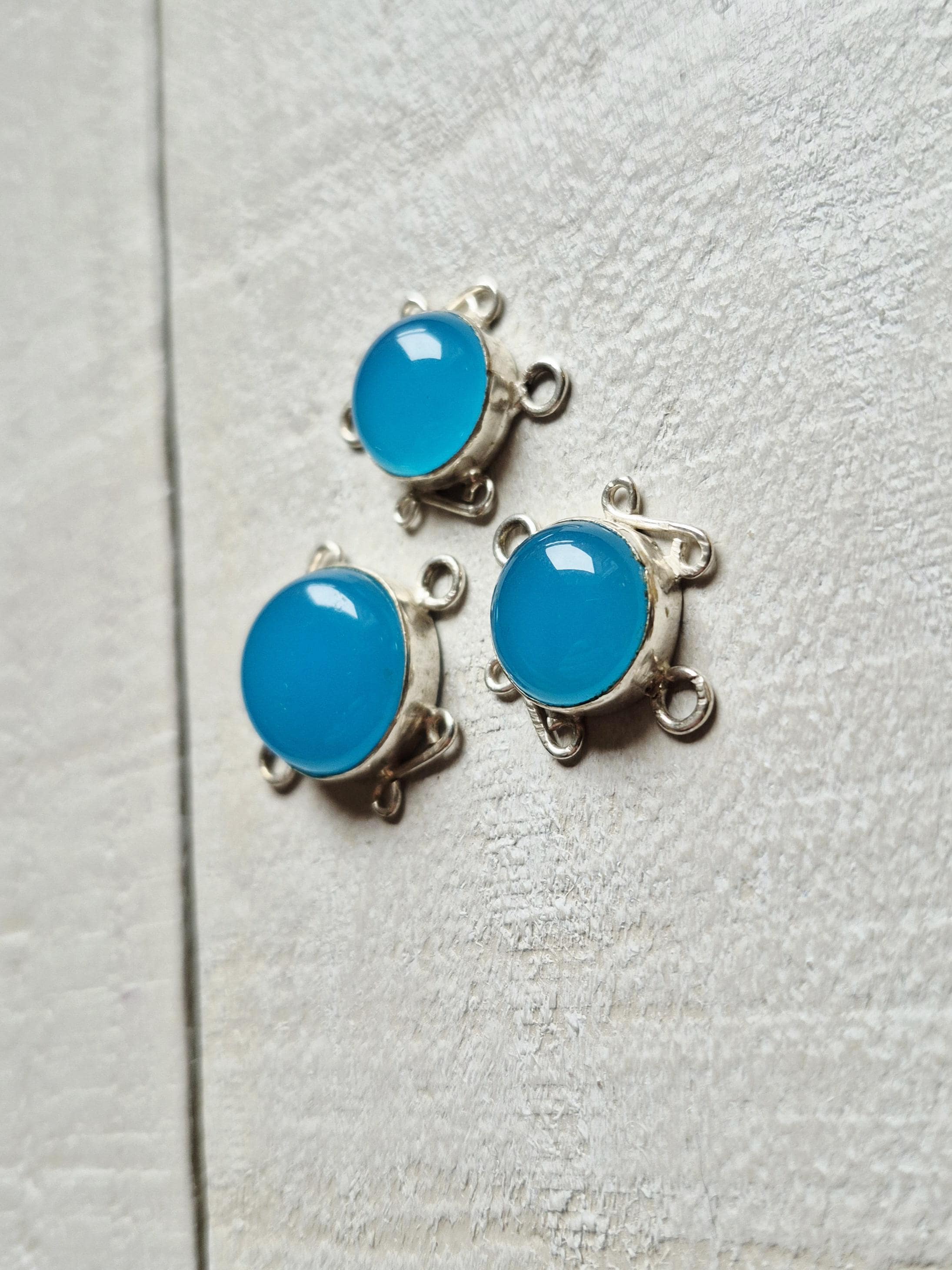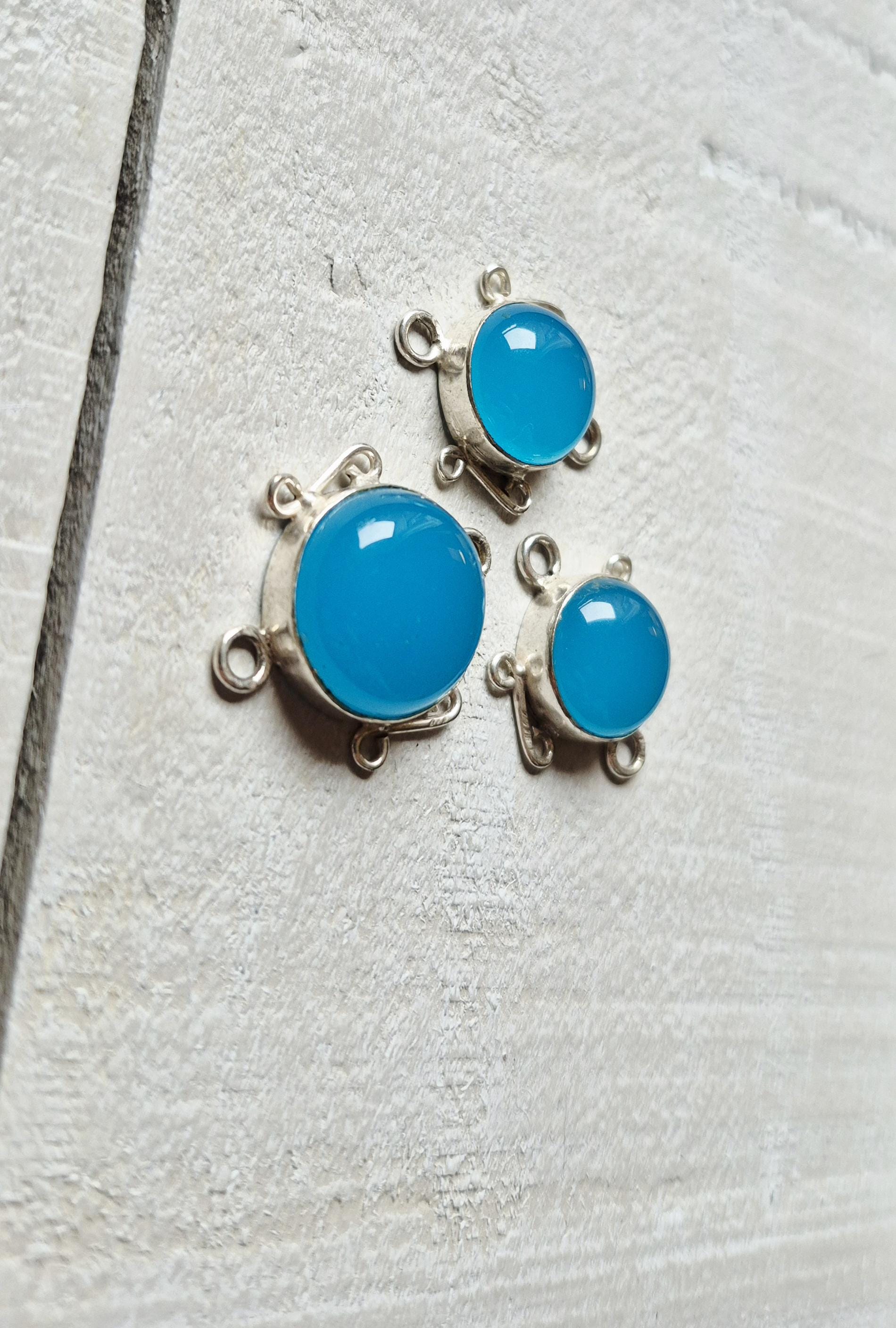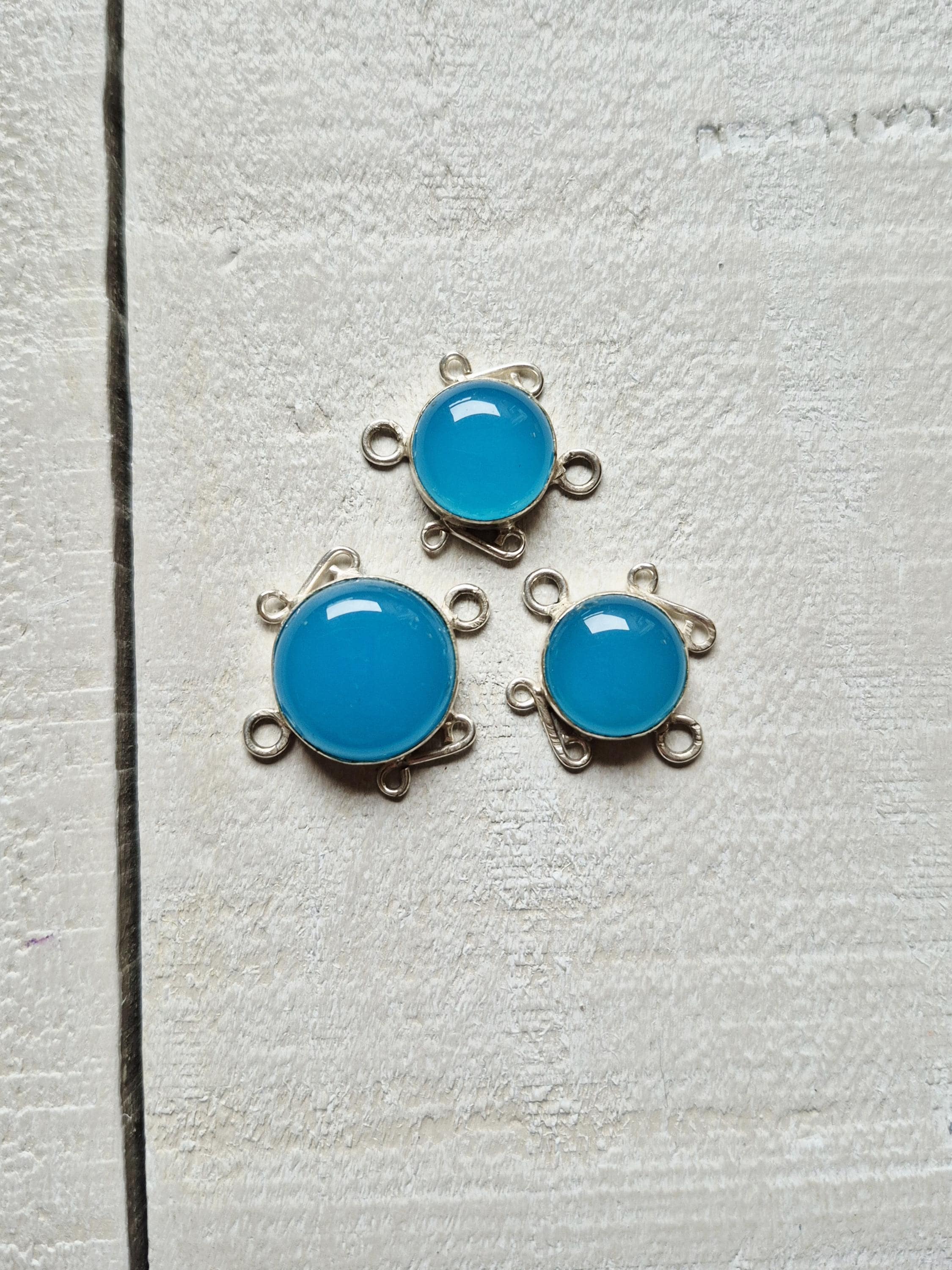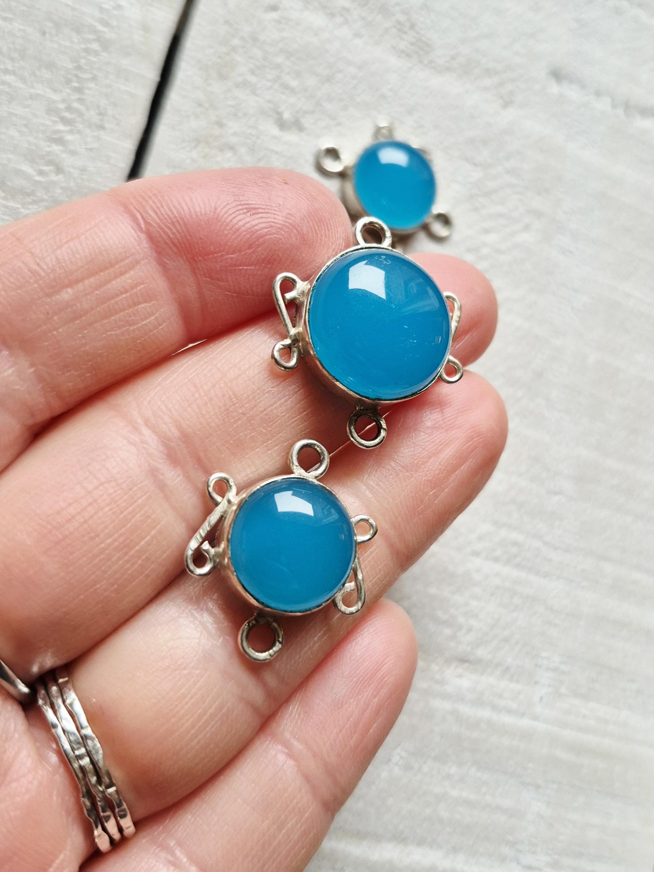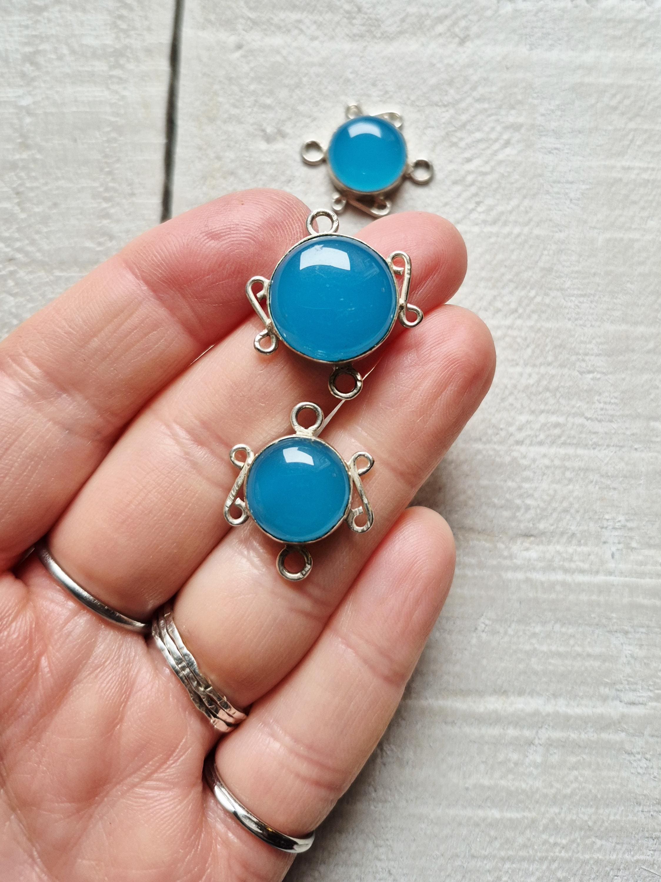 Blue chalcedony connectors...round, smooth gemstones in pretty 925 silver plated settings.