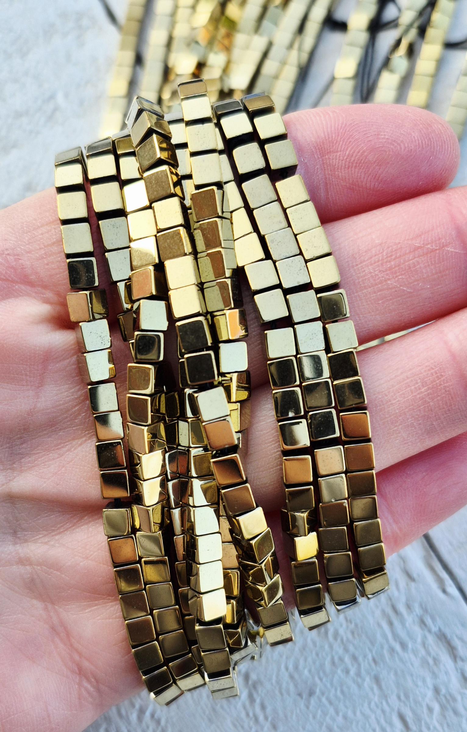 Gold plated Hematite cube beads...3.5mm