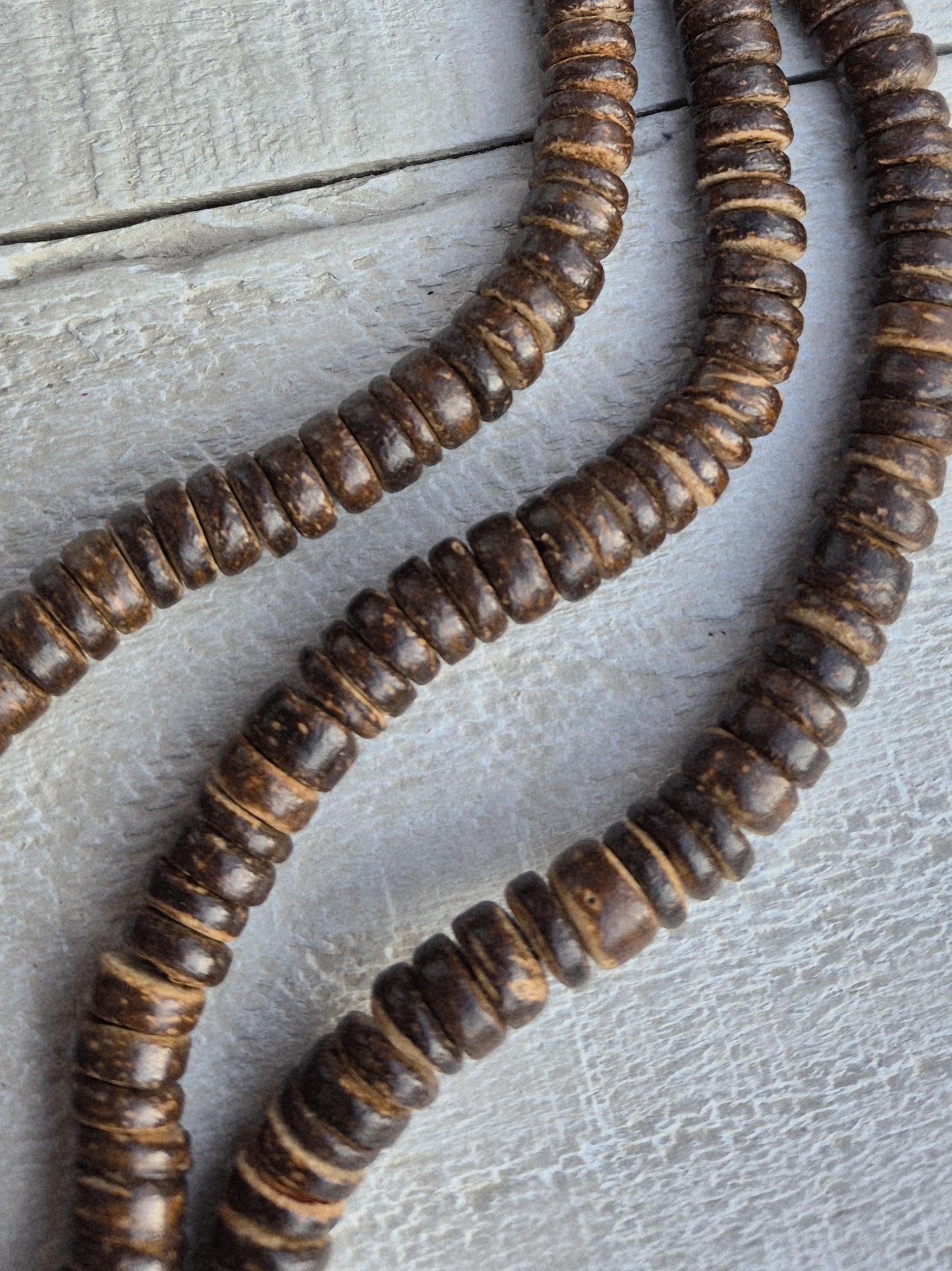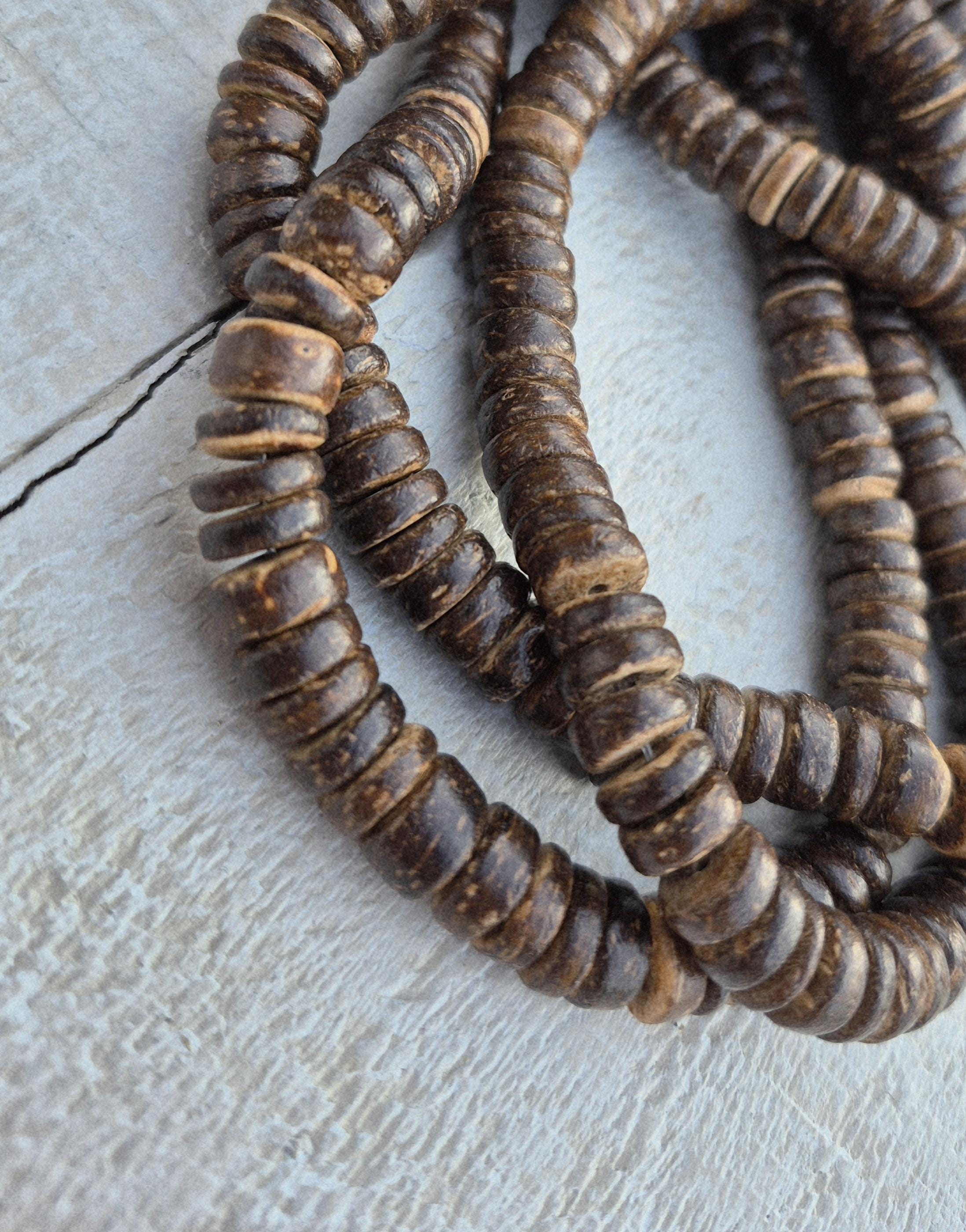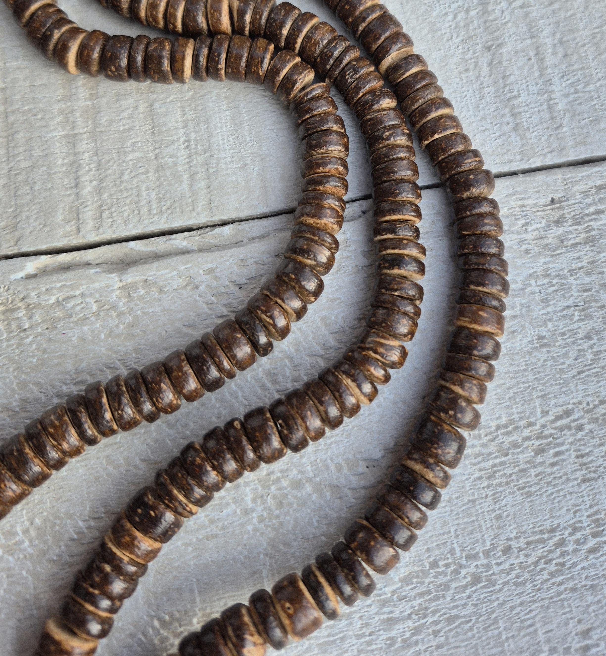 Brown coconut heishi beads...handmade beads that give your jewellery a rustic look.