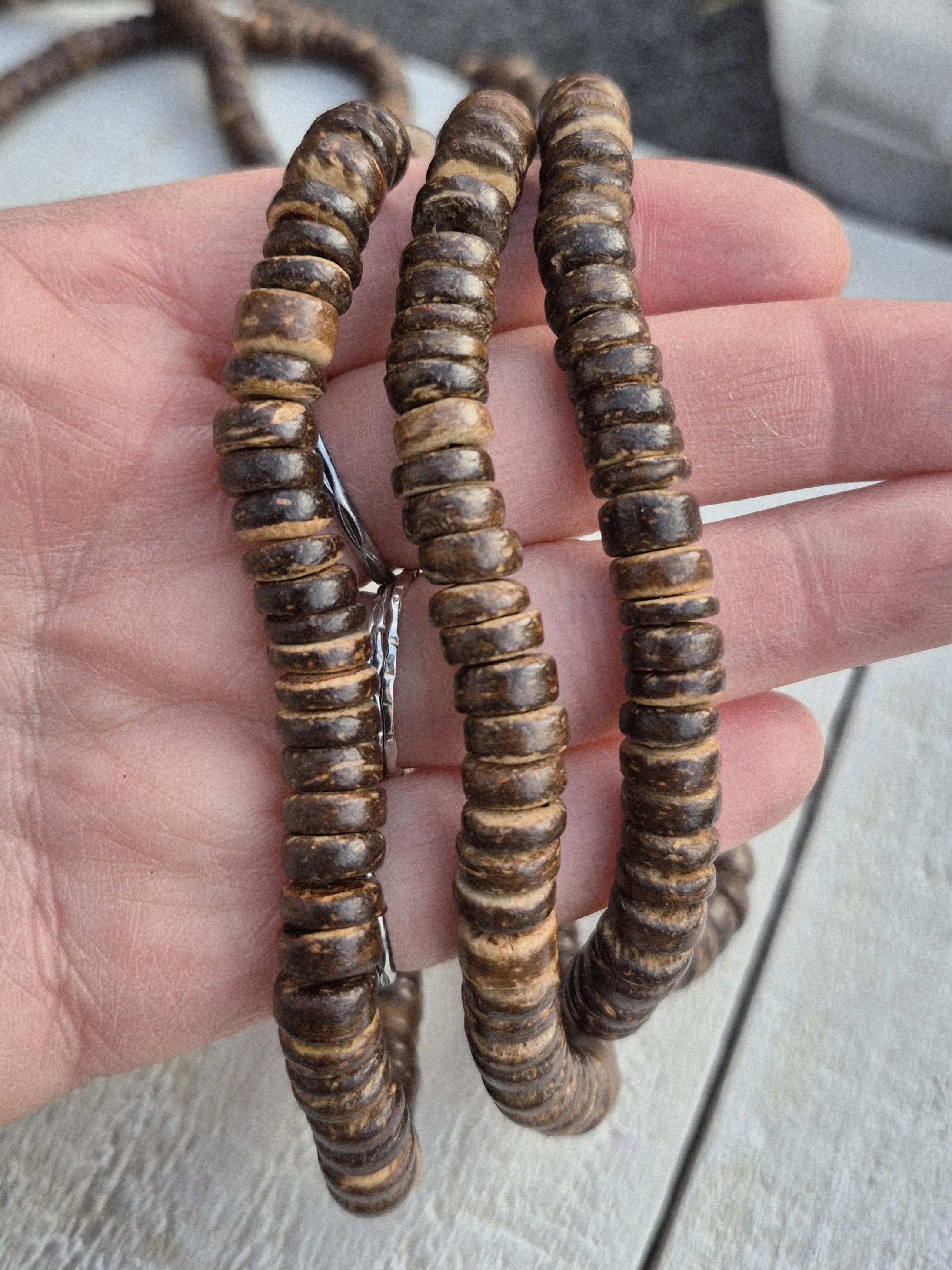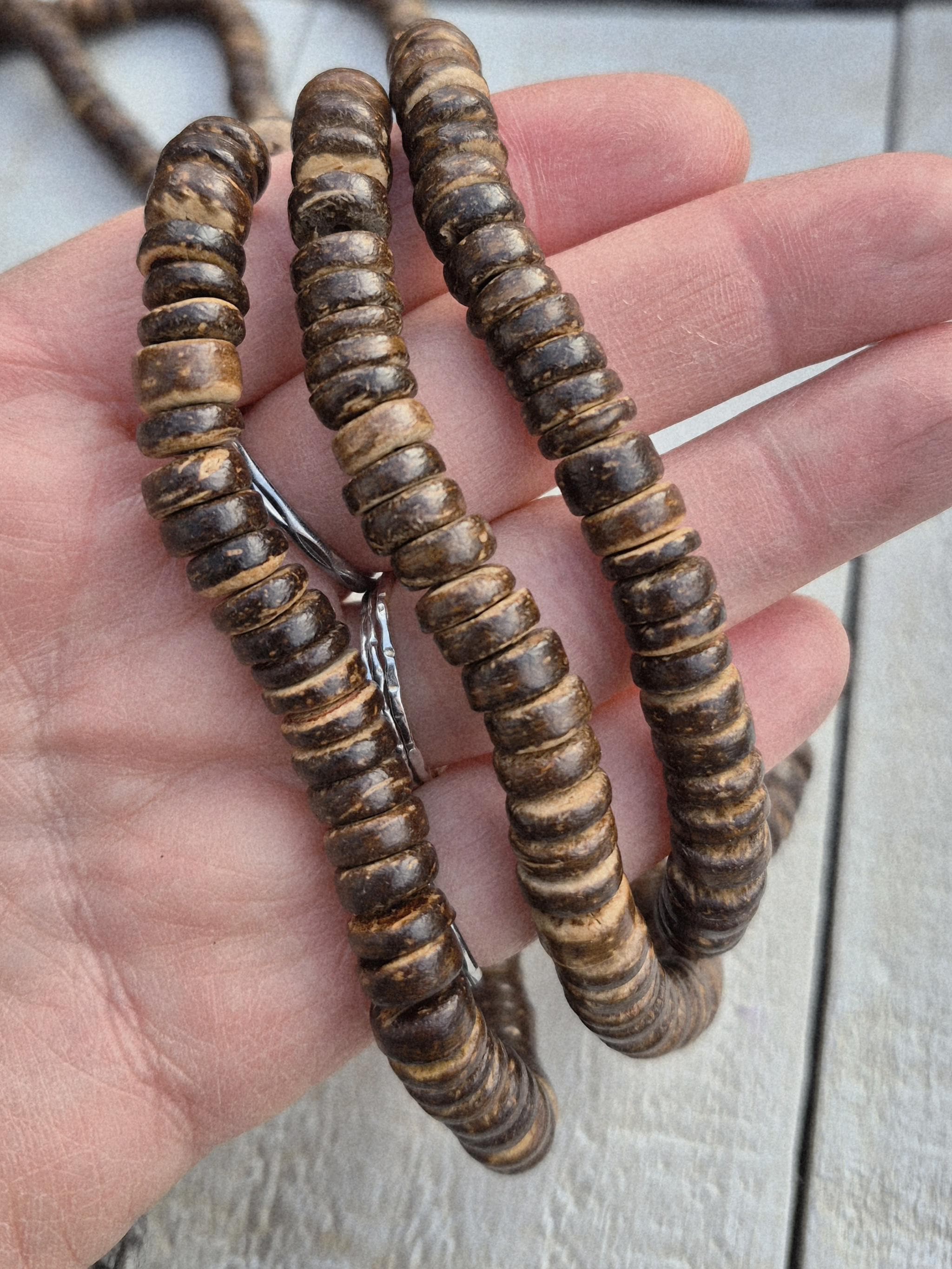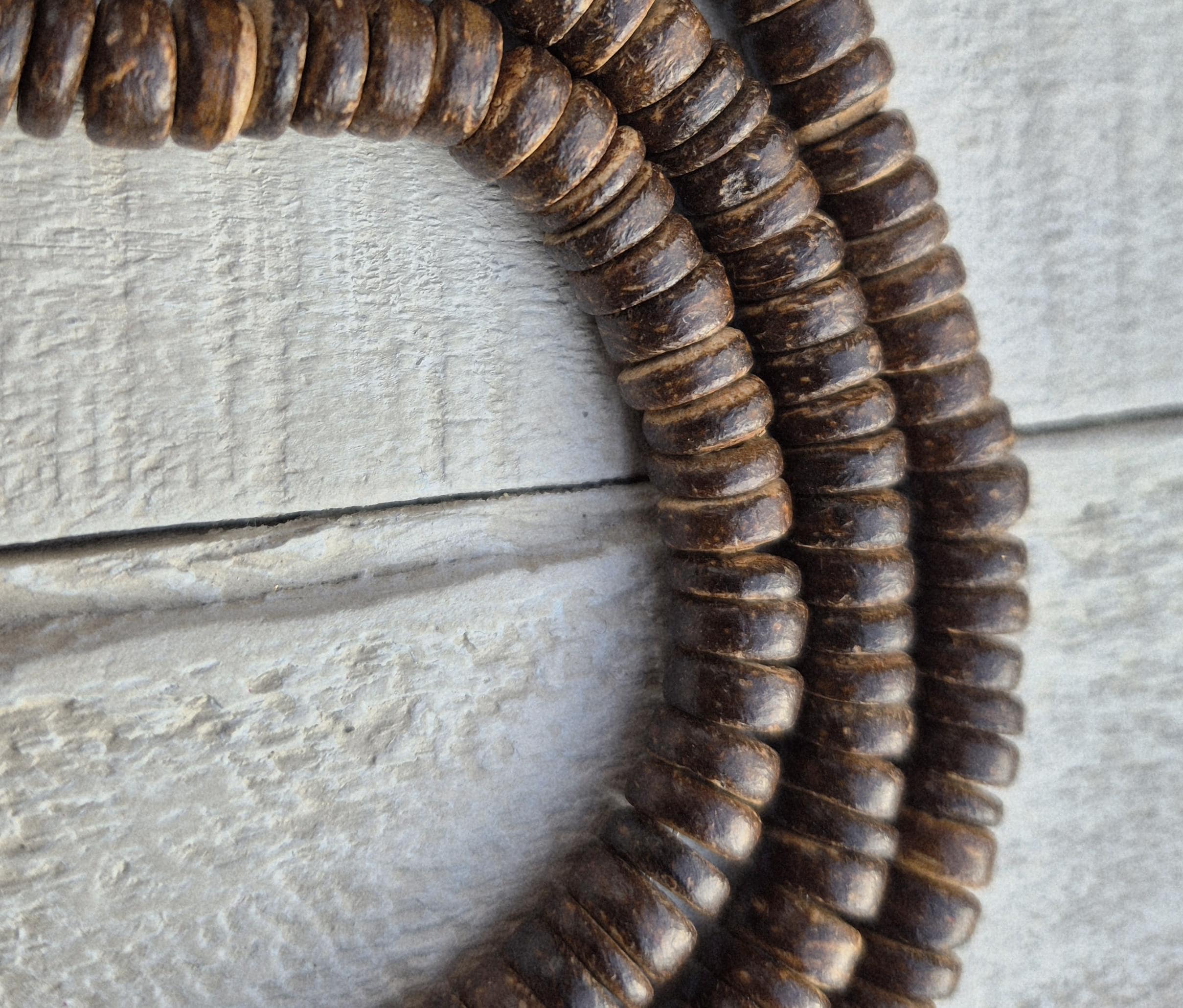 Brown coconut heishi beads...handmade beads that give your jewellery a rustic look.