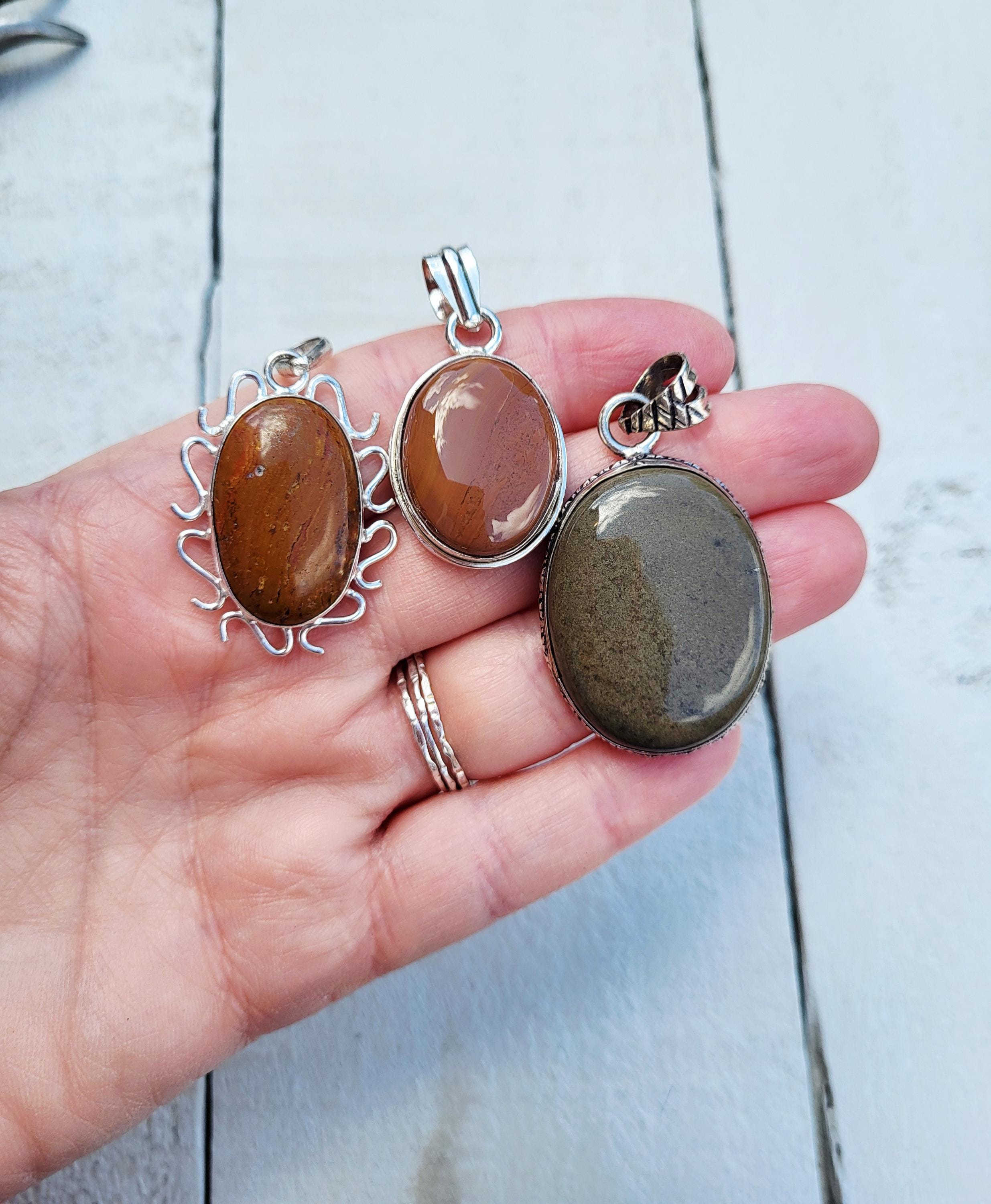 A mix of jasper gemstone pendants in 925 silver plated settings.