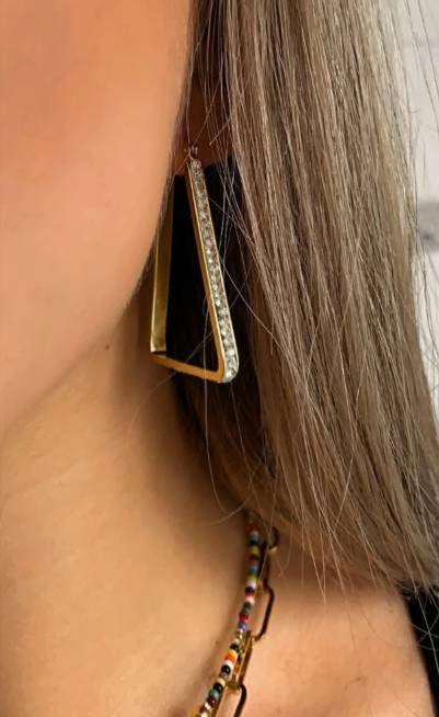 Super Sparkly Golden Earrings. Triangular Shaped with CZ's...for Pierced ears only