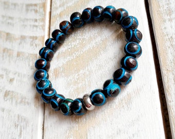 Bracelet Gemstone Beads Turquoise Blue Orange Agate Tassels Om Buddah Charms - BOHOSEASON