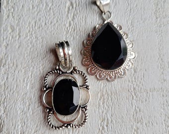 Black Agate Gemstone Connectors Oval & Teardrop Jewellery Making Findings 925 Silver Plated - BOHOSEASON