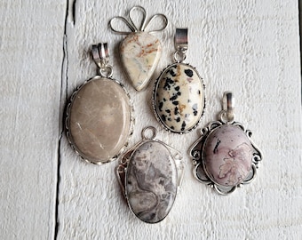 Gemstone Pendants Unakite Kambaba & Zebra Jaspers 925 Silver Plated Choose - BOHOSEASON